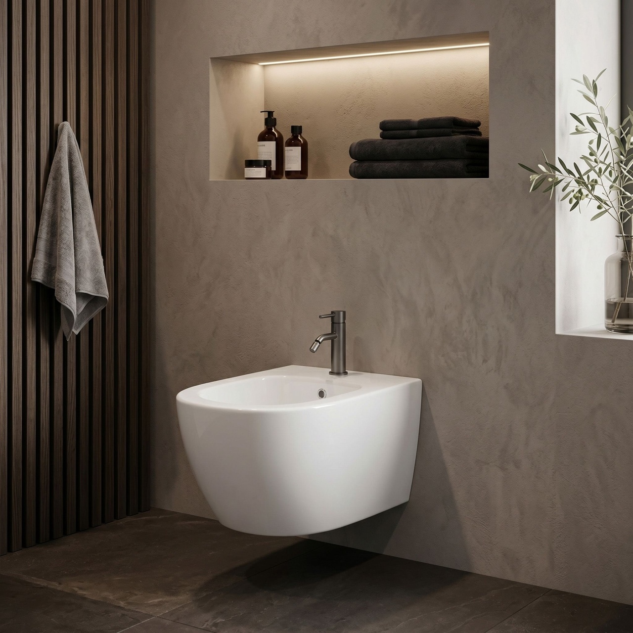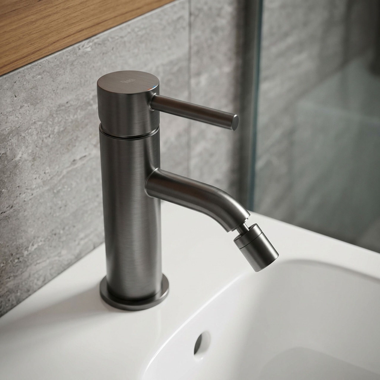 Bateria de bideu cu montaj pe stativ, în culoarea Brushed Titanium, este o combinație de estetică modernă și funcționalitate ridicată. Datorită formei sale simple, cilindrice, se potrivește perfect în tendințele actuale ale băilor, asortându-se cu interioarele în stil loft și modern.Finisaj Brushed Titanium (PVD) – acoperirea avansată aplicată cu tehnologia PVD garantează o rezistență excepțională la zgârieturi, coroziune și decolorare. Nuanța închisă, satinată a titanului este practică în utilizarea de zi cu zi, mascând eficient petele de apă și amprentele.Aerator mobil cu articulație – capătul pipei este echipat cu o articulație mobilă care permite ajustarea precisă a unghiului jetului de apă, ceea ce crește semnificativ confortul igienei.Construcție solidă din alamă – corpul din alamă de înaltă calitate asigură stabilitatea bateriei și fiabilitatea acesteia pe termen lung.Cartuș ceramic – interiorul bateriei ascunde un cartuș ceramic de înaltă clasă, care este responsabil pentru reglarea lină și precisă a presiunii și temperaturii apei.Instalare standard – bateria este adaptată pentru montarea direct pe bideu, potrivindu-se în orificiile de montare standard, ceea ce facilitează o instalare rapidă și fără probleme.Alegând bateria de bideu Lungo, obțineți un echipament durabil și elegant care, datorită acoperirii PVD moderne, își va menține un aspect impecabil mulți ani. Tip baterie: de bideu Metodă de montaj: Montată pe blat Culoare: Titan Tip de gura de scurgere: Mobilă Material: Alamă Lungimea gurii: 90 Inalime: 170 Tehnologia de acoperire: PVD Diametru pentru conectare: 3/8 țoli Garantie: 5 ani