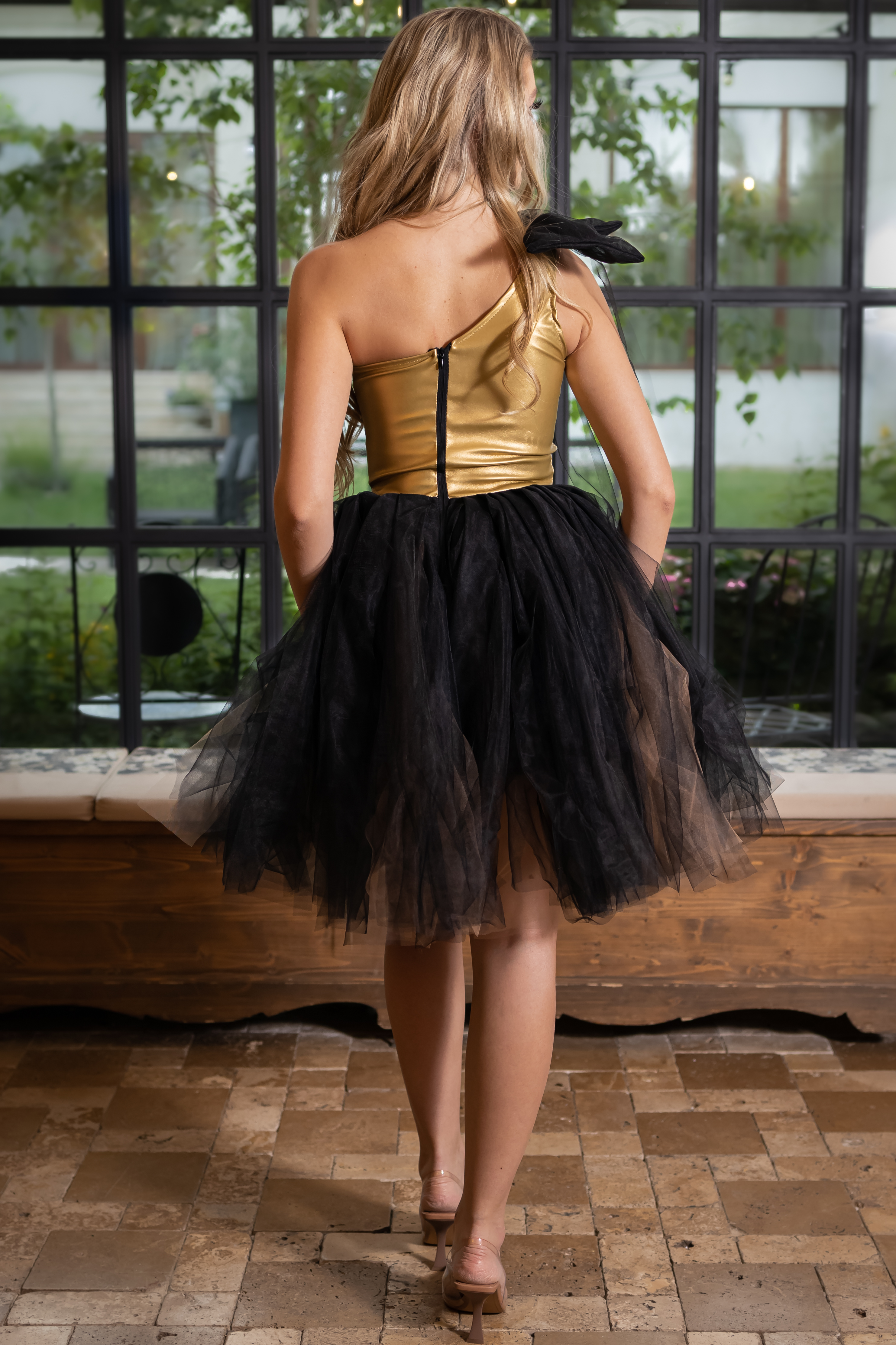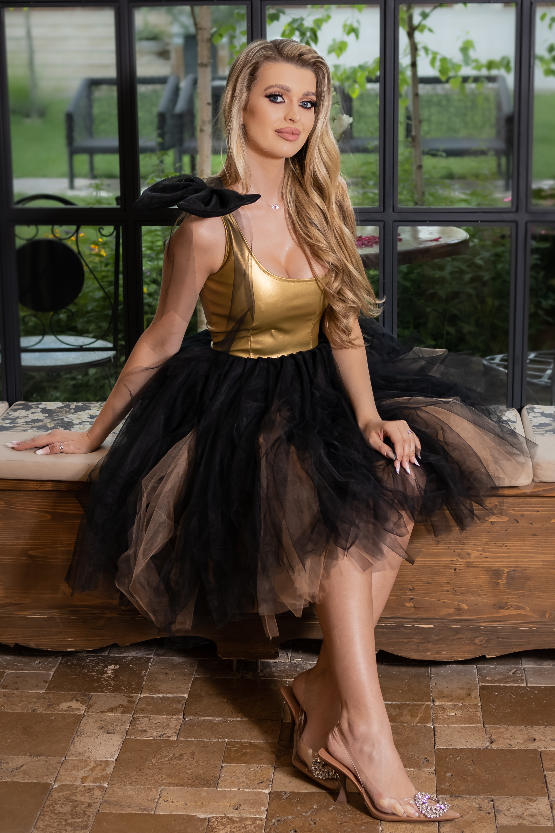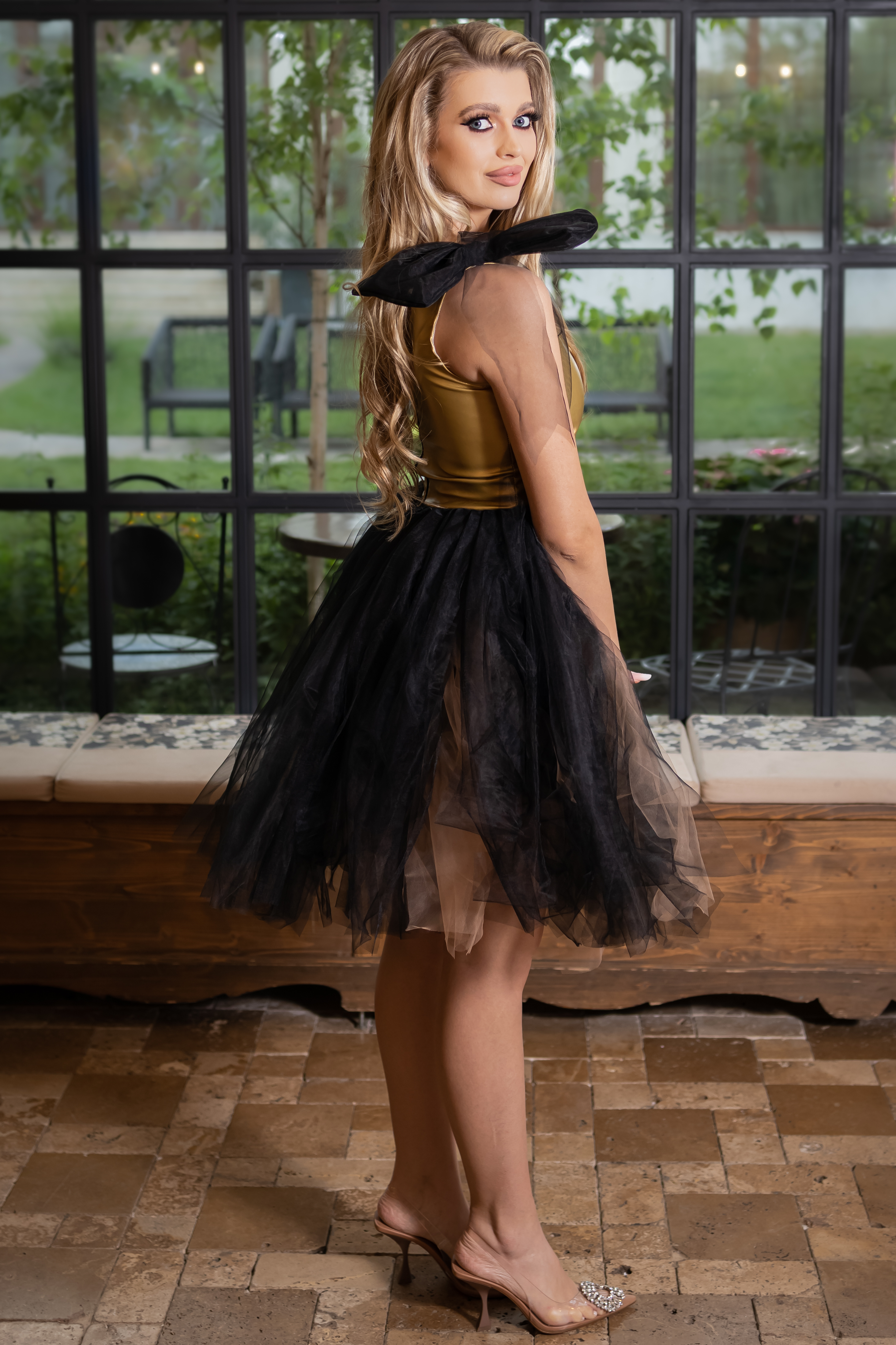 Rochie, eleganta cu corset din piele ecologica si tulle.Culoare: auriu si negruCroi: corset si croi in closTextura: piele, tulleInchidere cu fermoar la spateCompozitie: 100% poliester Modelul are 1,70 m inaltime si poarta masura S. INFO: Echipa noastra face toate eforturile in a prezenta cat mai bine culorile produselor prezentate pe site insa culorile pot diferi de situatia reala si pot varia in functie de setarile monitorului/dispozitivului dvs! Instructiuni folosire:
