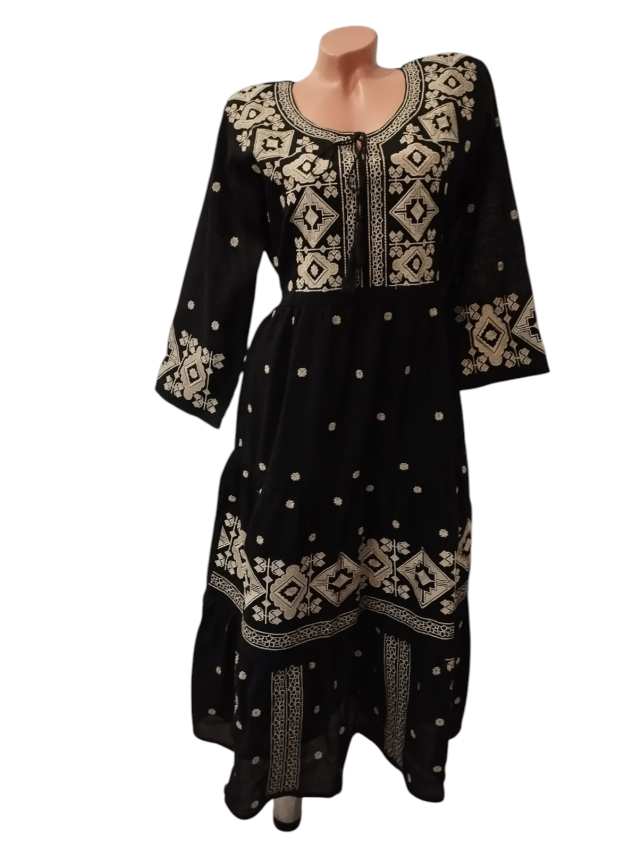 Rochie Engros pentru femei, cu model traditional brodat Material: negru, vascoza