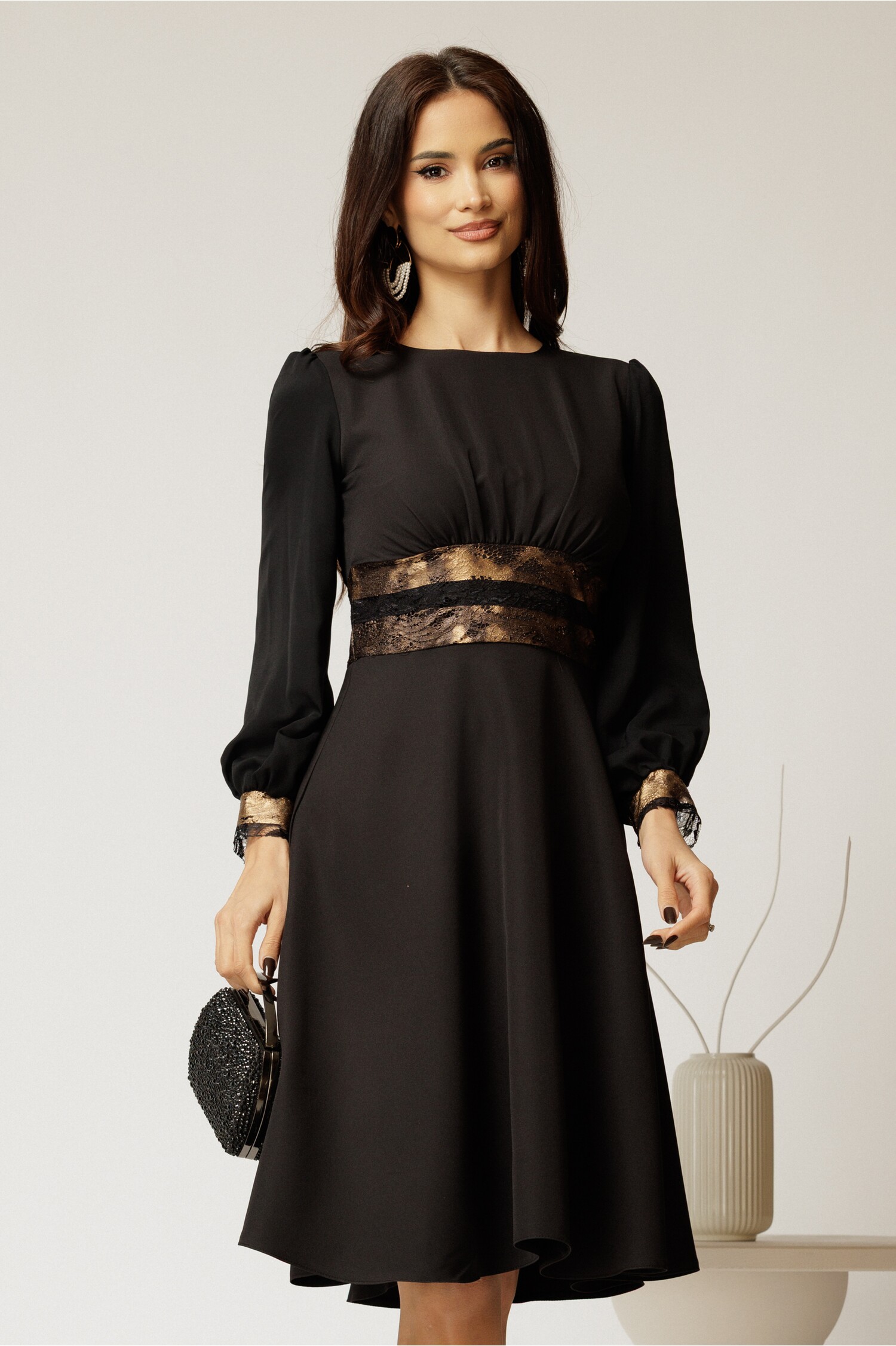 Rochie midi vaporoasa din voal cu baza dublata. Are decolteu rotund, maneci trei sferturi si croi in clini. Rochie vaporoasa Decolteu rotund Maneci trei sferturi Croi in clini Captusita pe interior Inchidere cu fermoar la spate Material: Voal Compozitie: 75% Poliester, 25% Viscoza Fotomodelul poartă mărimea: S | Înălțime: 173 cm Fiecare produs este măsurat individual. Te rugăm să consulți ghidul de mărimi pentru alegerea corectă a mărimii!