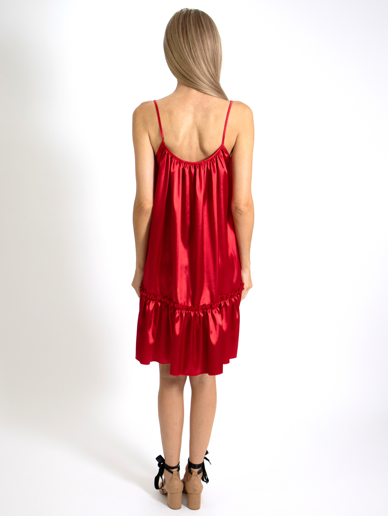 Rochie cu bretele, cu croi lejer, din Satin, foarte versatila pentru orice ocazie, ideala atat cu sandale elegante, pantofi stiletto sau chiar si incaltari joase tip papuci, balerini, sandalute. Printr-o croiala lejere, realizata dupa un tipar de succes, se potriveste pentru orice tip de silueta. Simpla, dar in acelasi timp emanand senzualitate si rafinament, este rochia perfecta pentru evenimente de zi sau la o iesire in oras. Masurile modelului: Modelul poarta masura XS si are 1,75m
