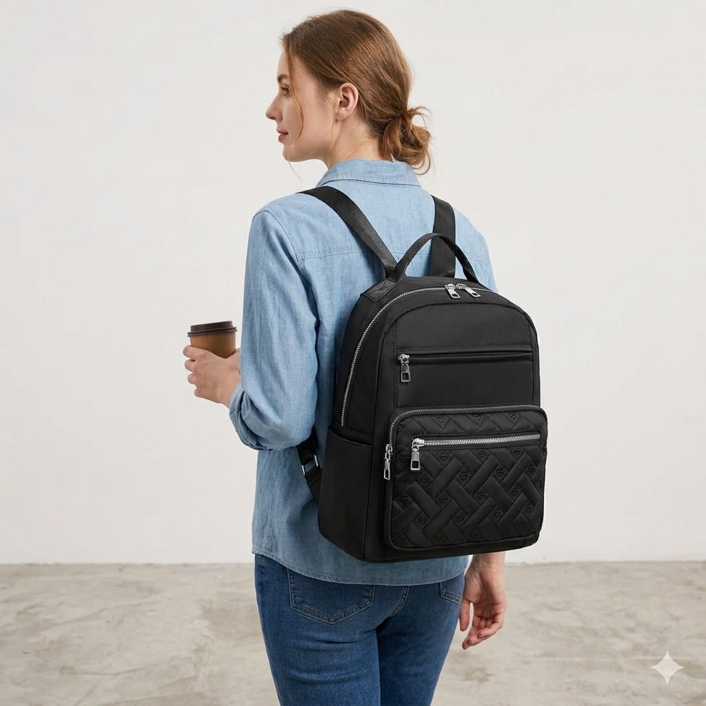 interior captusit; 1 compartiment principal; 2 buzunare interioare fara inchidere; 1 buzunar interior cu fermoar; 3 buzunare exterioare fata cu fermoar; 1 buzunar exterior spate cu fermoar; 2 buzunare laterale fara inchidere; bretele ajustabile; material: poliester impermeabil; sistem inchidere: fermoar; dimensiuni: 28 x 14 x 35 cm; greutate: 0.5 kg; accesorii de culoare neagra. Important: Nuanta produsului poate varia usor, datorita luminozitatii monitorului, datorita varietatilor instrumentelor de masura, pot exista usoare erori de cm!