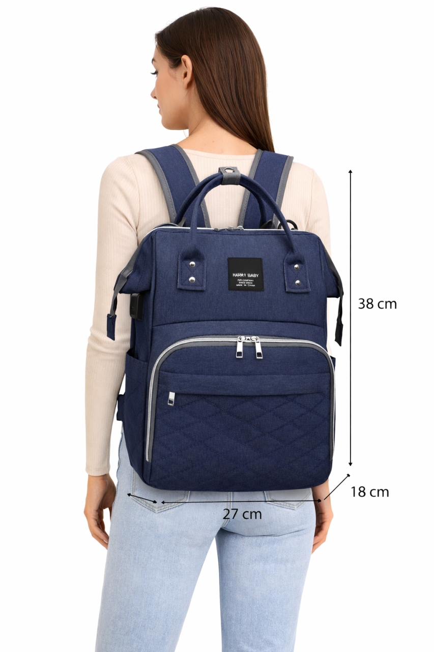 interior captusit; 1 compartiment principal; 3 buzunare interioare fara inchidere; 1 compartiment cu 3 buzunare pentru biberoane; 1 buzunar exterior fata cu fermoar; 1 buzunar exterior spate cu fermoar; 2 buzunare laterale; posibilitate de atasare la carucior; bretele ajustabile; material: poliester impermeabil; sistem inchidere: fermoar; dimensiuni: 27 x 18 x 38 cm; greutate: 0.5 kg; accesorii metalice de culoare argintie. Important: Nuanta produsului poate varia usor, datorita luminozitatii monitorului, datorita varietatilor instrumentelor de masura, pot exista usoare erori de cm!