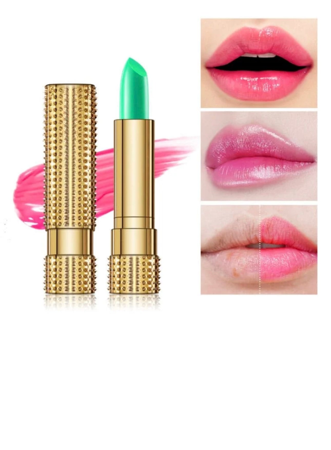 Ruj de buze solid verde 6/cutie en-gross. Transformă-ți machiajul cu un strop de magie! Un ruj spectaculos care cucerește din prima aplicație: Ruj inteligent – schimbă culoarea! Aplicare verde, rezultat roz personalizat în funcție de pH-ul buzelor. Hidratează și colorează într-un singur pas Textură cremoasă cu efect de balsam, ideală pentru buze moi și netede. Ambalaj elegant, ideal pentru cadouri sau revânzare Aspect luxos care atrage imediat privirea clientelor.Set economic de 6 bucăți Perfect pentru revânzători, saloane de beauty, buticuri și magazine angro.