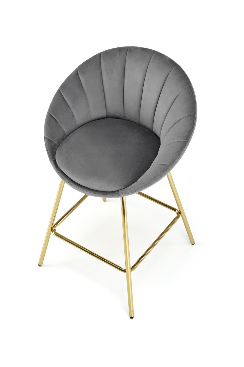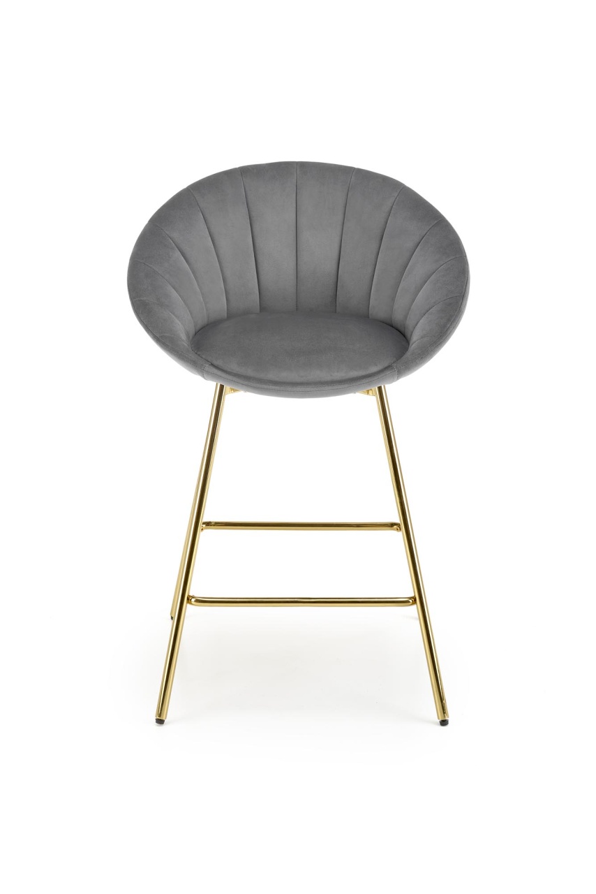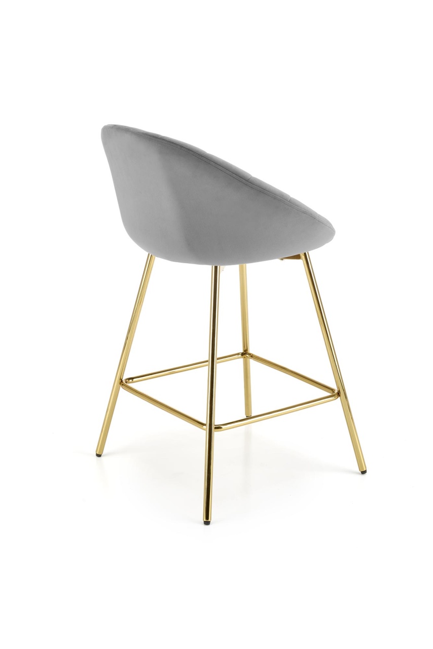 Scaun de bar H-112 velvet gri Scaun de bar H-112 velvet gri cu un design modern si sofisticat se va integra perfect in incinta restaurantului sau a barului dvs cat si acasa. Scaunul de bar este realizat cu grija la detalii, avand picioarele aurii si sezutul din catifea. Dimensiuni: 58 52 87 62 Latime: 58 cm Adancime: 52 cm Inaltime totala: 87 cm Inaltime de la sol la sezut: 62 cm Produsul nu este montat. Instructiunile de montaj se gasesc in colet.