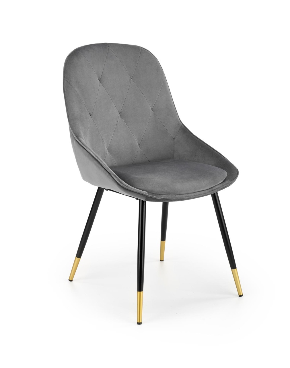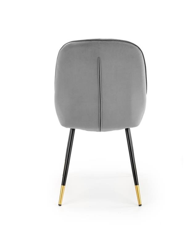 Scaun K437 Velvet Gri – l49 x A55 x h88 cm Scaunul K437 Velvet este un scaun tapitat cu catifea avand un design modern care iese in evidenta prin culorile sale. Scaun confortabil potrivit pentru interioarele moderne si clasice. Dimensiuni: 49 55 88 47 cm Latime: 49 cm Adancime: 55 cm Inaltimea totala: 88 cm Inaltimea sezutului fata de sol: 47 cm Detalii tehnice: Cadrul este realizat din metal acoperit cu pulbere Tapiteria este confectionata din catifea Culoare: Gri / Negru Asamblare: Produsul nu este montat. Asamblarea este rapida si usoara.