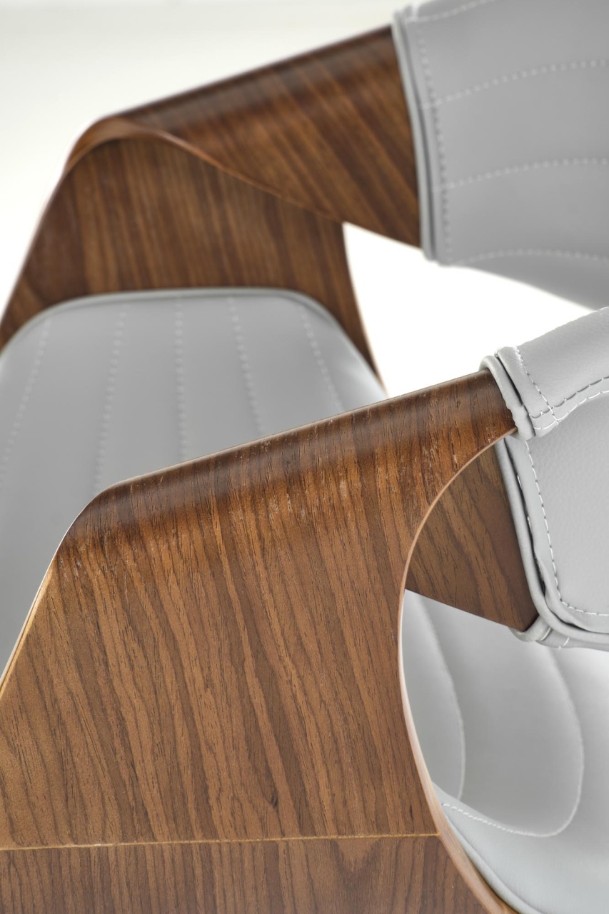 Scaunul K544 va fi perfect pentru interioarele decorate într-un stil modern. Este o piesă de mobilier elegantă, care va fi un plus de eleganță și funcțional pentru sufragerie sau dining. Un scaun conceput pentru a oferi încântare ochilor și momente fericite de relaxare. Dimensiuni: Lățime: 55 cm Adâncime: 55 cm Înălțimea totală: 77 cm Înălțimea șezutului față de sol: 45 cm Detalii tehnice: Cadrul este realizat din placaj îndoit. Tapițeria este confecționată din piele ecologică. Produsul nu este montat, este destinat pentru auto-asamblare. Instrucțiunile de montaj vin în colet.