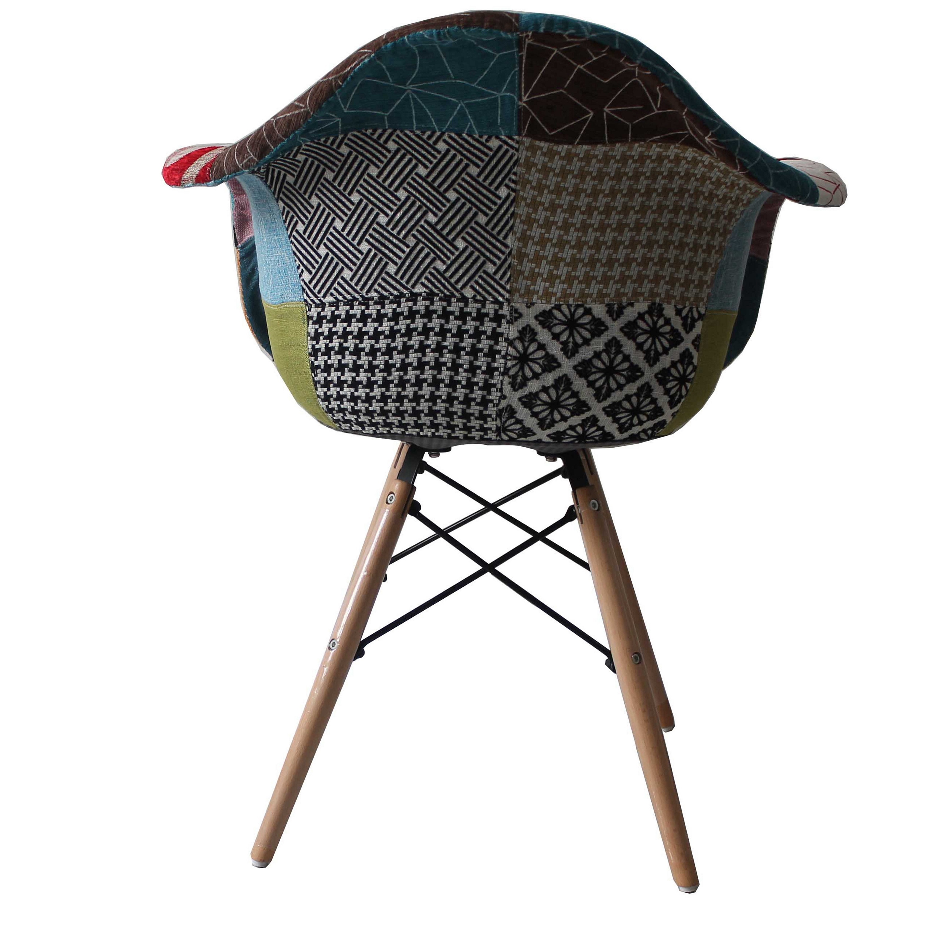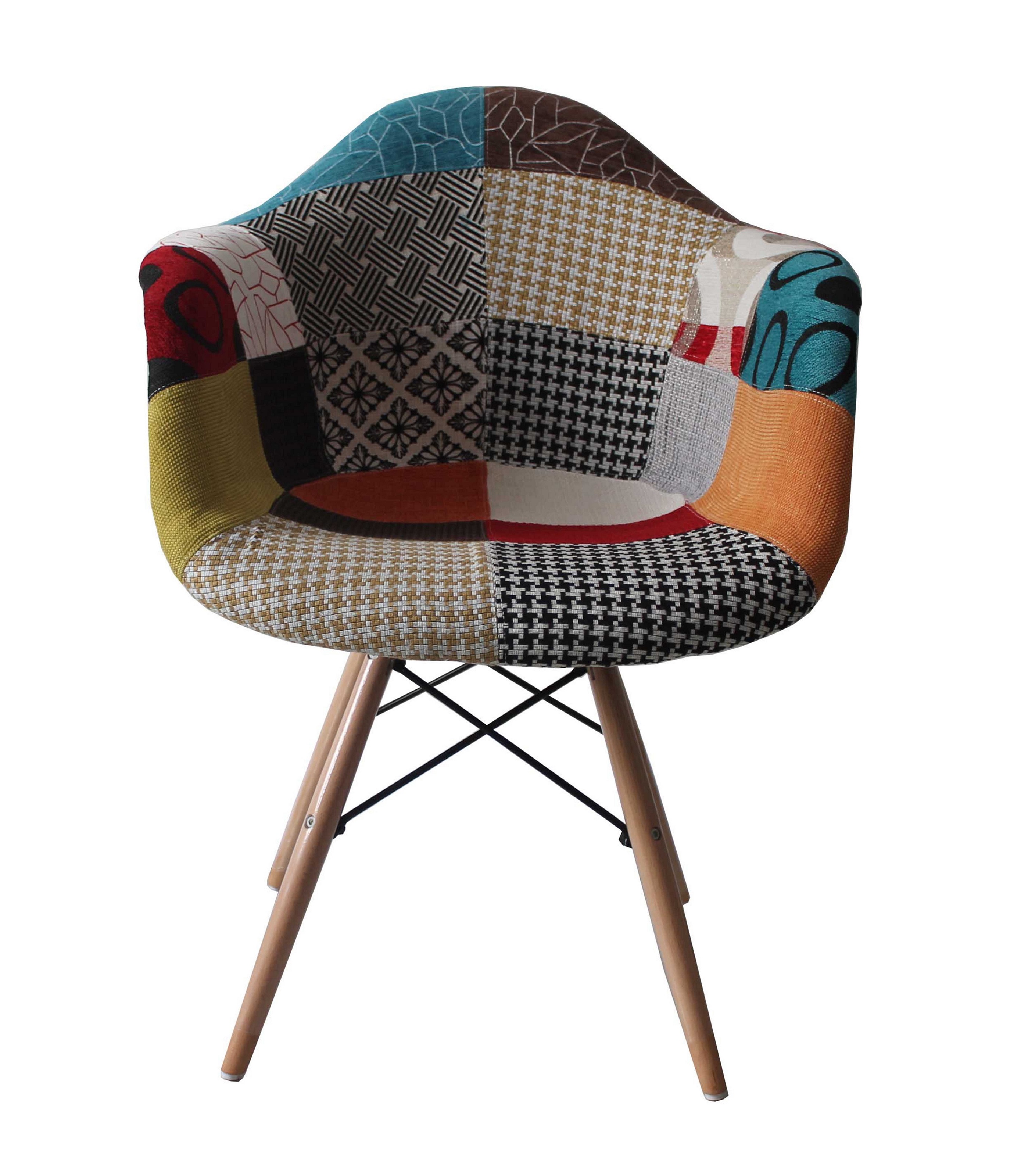 Scaunele Patchwork Design sunt piesele de mic mobilier cu design vintage folosite cel mai des in amenajarile moderne. Forma de scoica a sezutului, picioarele din lemn, precum si culorile in care sunt concepute, le fac extrem de usor de alaturat mobilierului, accesoriilor si finisajelor moderne din caminul dumneavoastra. In cazul in care ai un spatiu de living minimalist, cu bucatarie open space sau pur si simplu ai hotarat sa iti amenajezi locul de luat masa in living si esti in cautarea unor scaune cu un design aparte, iti recomandam scaunele Patchwork.Sezutul tip scoica este capitonat cu burete si tapitat cu material textil. Picioarele scaunelor Patchwork sunt din lemn armat si rigidizat, care armonizeaza cu metalul negru vopsit in camp electrostatic. In capatul picioarelor sunt atasate capacele pentru a evita zgarierea suprafetelor.Scaunul are o inaltime de 81 cm, 63 cm latime si 64 cm adancime. Greutatea maxim suportata este de 100 kg.Intretinere: poate fi curatat cu solutii din comert special concepute pentru acest tip de materialProdusul se livreaza demontat si este insotit de instructiuni si accesorii pentru asamblare.