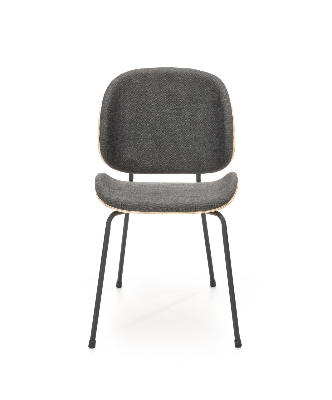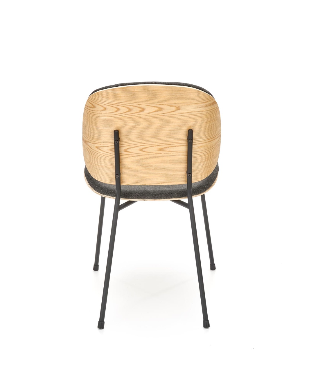 Scaunul K467 din placaj îndoit reprezintă un echilibru perfect între design contemporan, confort și durabilitate. Cu o structură realizată din placaj de înaltă calitate, acest scaun emană eleganță și rezistență într-un mod subtil și rafinat. Culoarea gri închis a scaunului adaugă un element de modernitate și se integrează armonios cu alte piese de mobilier. Astfel, scaunul K467 devine nu doar o alegere practică, ci și un element de design care îmbogățește estetica încăperii. Dimensiuni: 81 cm 46 cm 47 cm 57 cm Lățime: 47 cm Adâncime: 57 cm Înălțimea totală: 81 cm Înălțimea șezutului față de sol: 46 cm Detalii tehnice: Cadrul este realizat din oțel vopsit cu pulbere. Tapițeria este confecționată din stofă. Spătarul este realizat din placaj îndoit. Culoare: Gri închis / stejar natural Produsul nu este montat, este destinat pentru auto-asamblare. Instructiunile de montaj vin in colet.