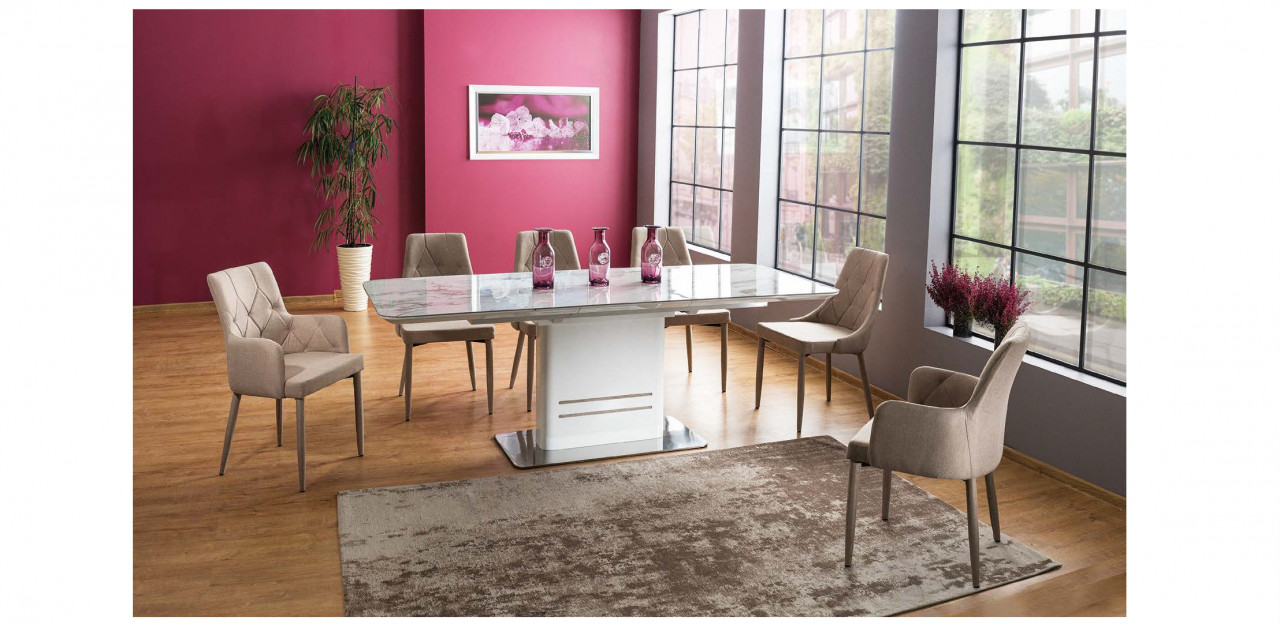 Scaun textil Ricardo bej Scaunul textil Ricardo - realizat din material textil si metal, completeaza armonios decorul unei camere de zi, al unui dormitor sau a locului de luat masa prin design-ul modern. Dimensiuni: 88 cm 48 cm 50 cm 44 cm Produsul nu este montat, este destinat pentru auto-asamblare. Instructiunile de montaj vin in colet.