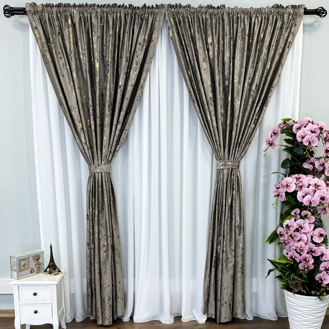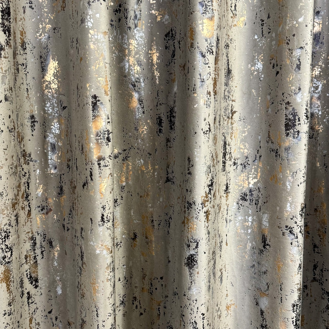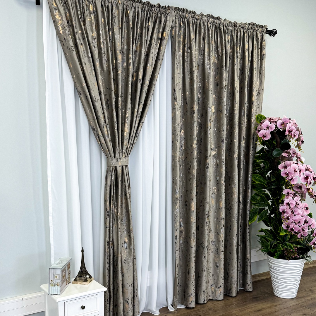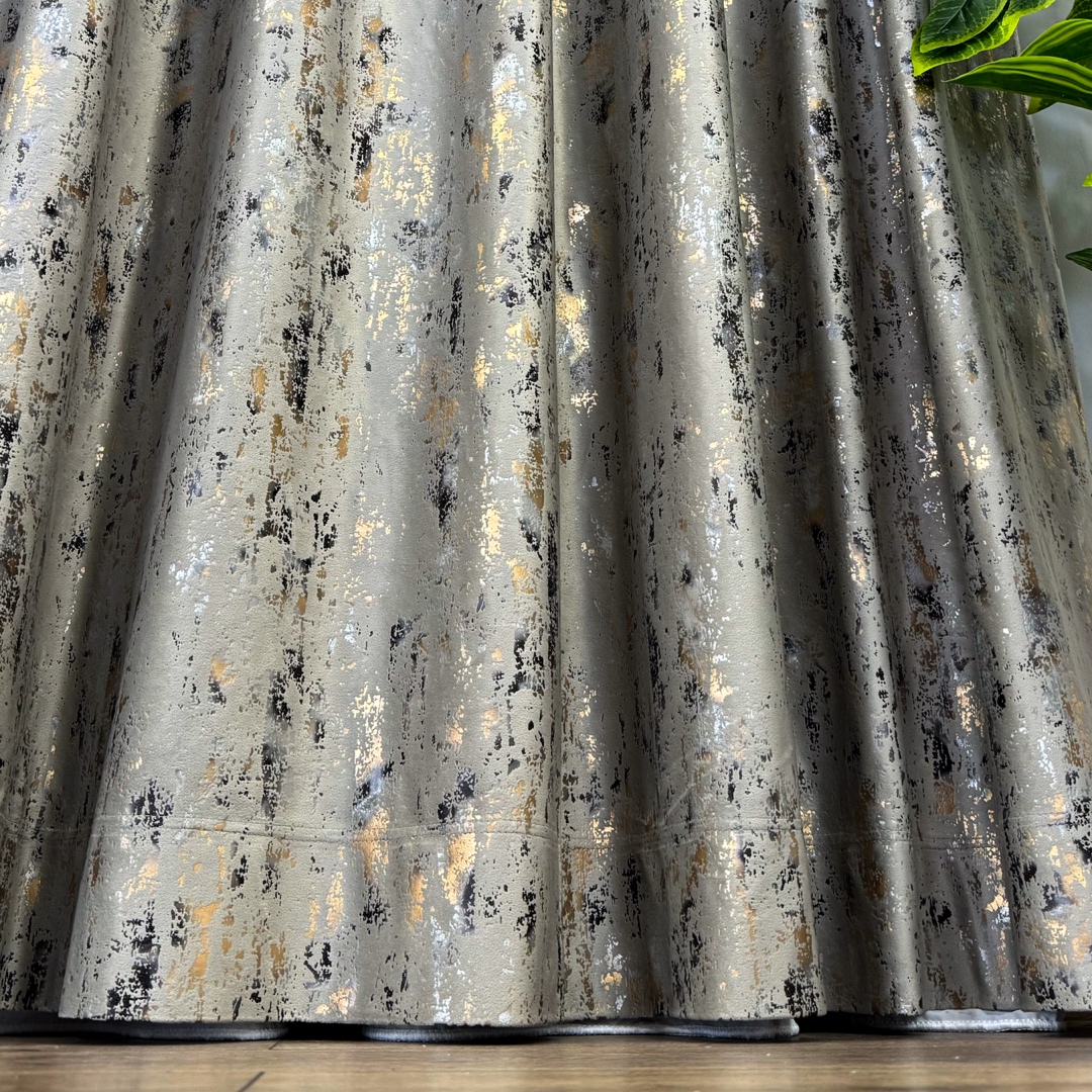 Set 2 Draperii Catifea CRETA cu insertii aurii, Grej - YNS33-23, 140cm latime x 260cm inaltime, cu tiv lat pat bara