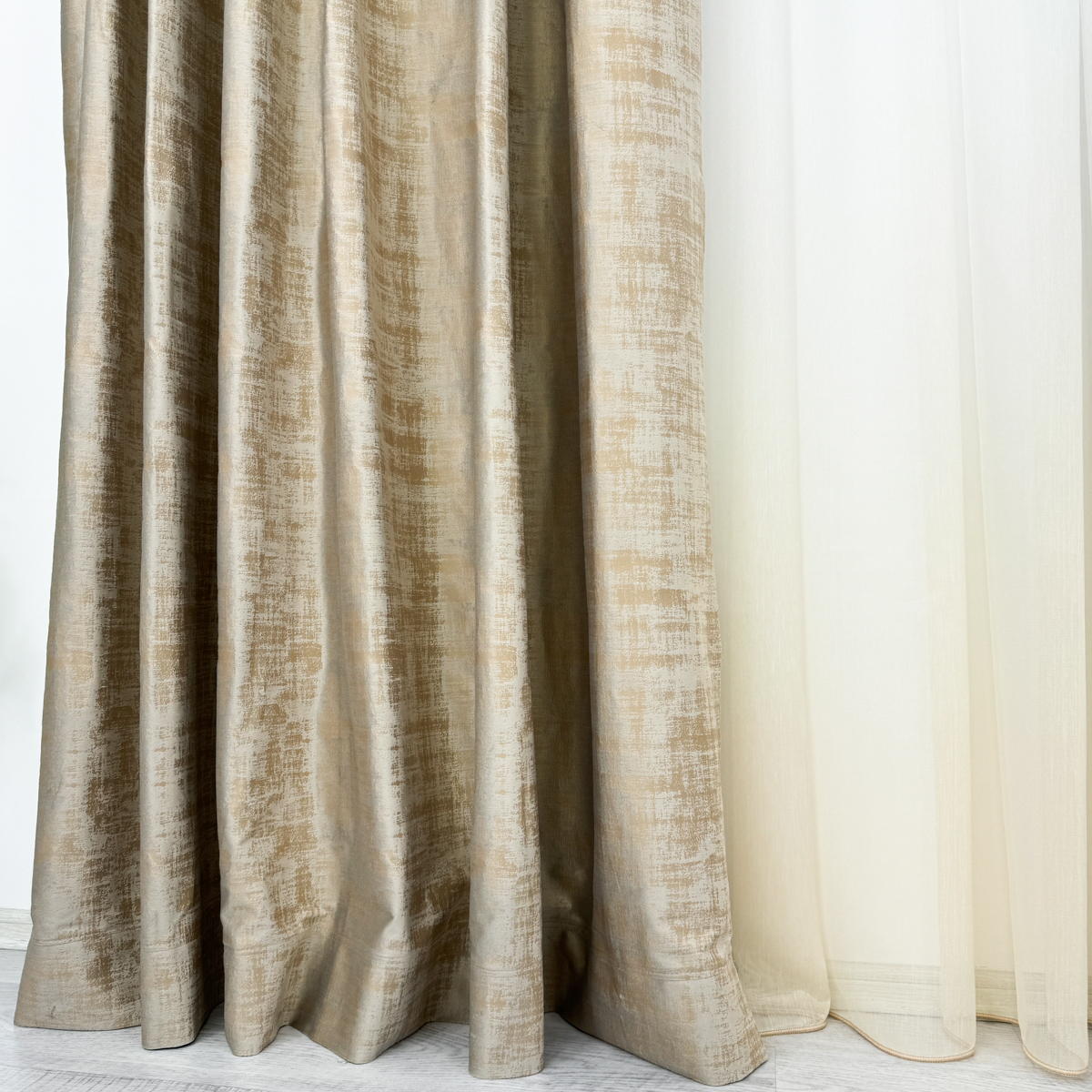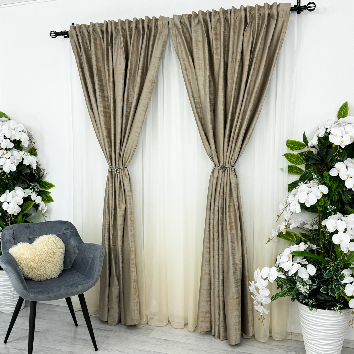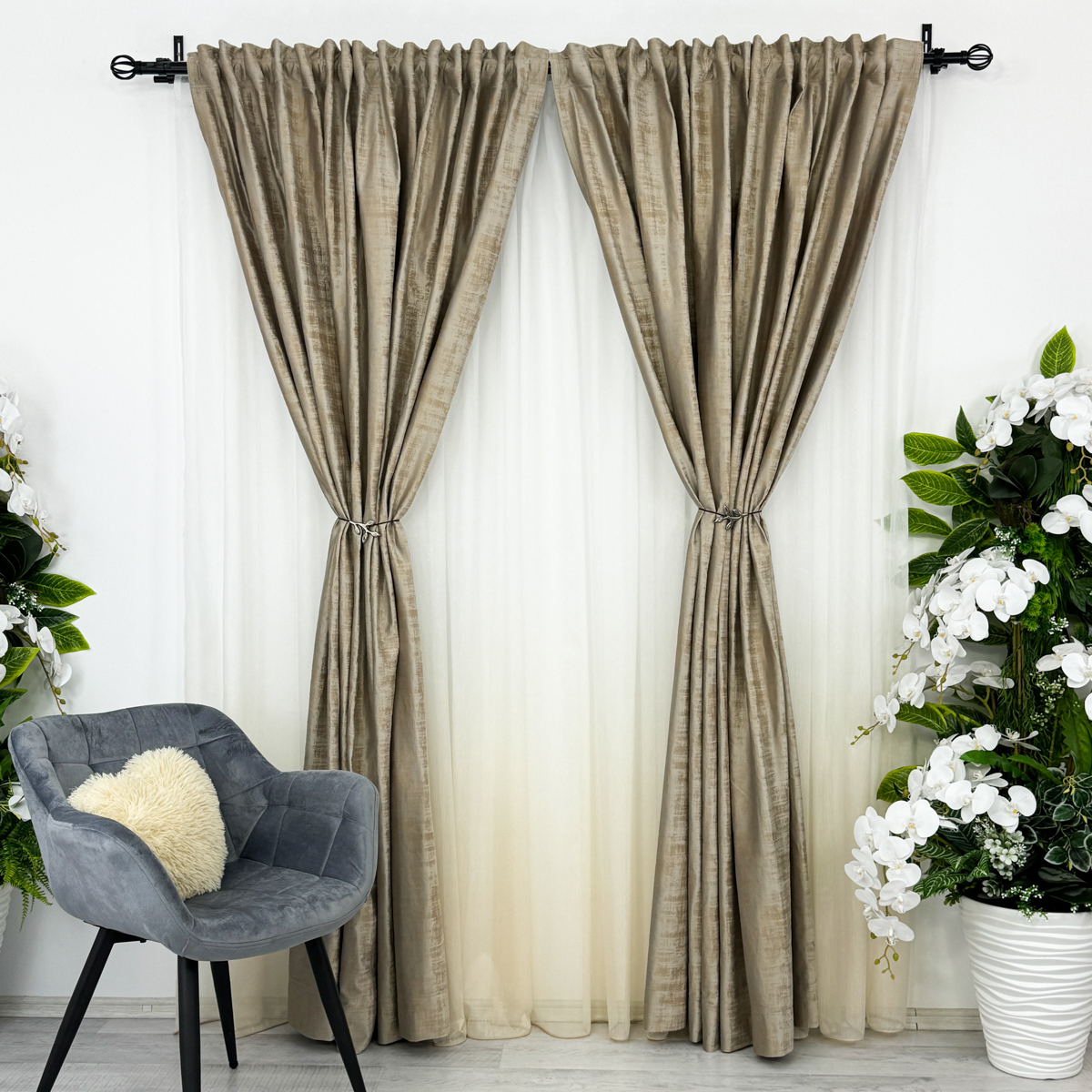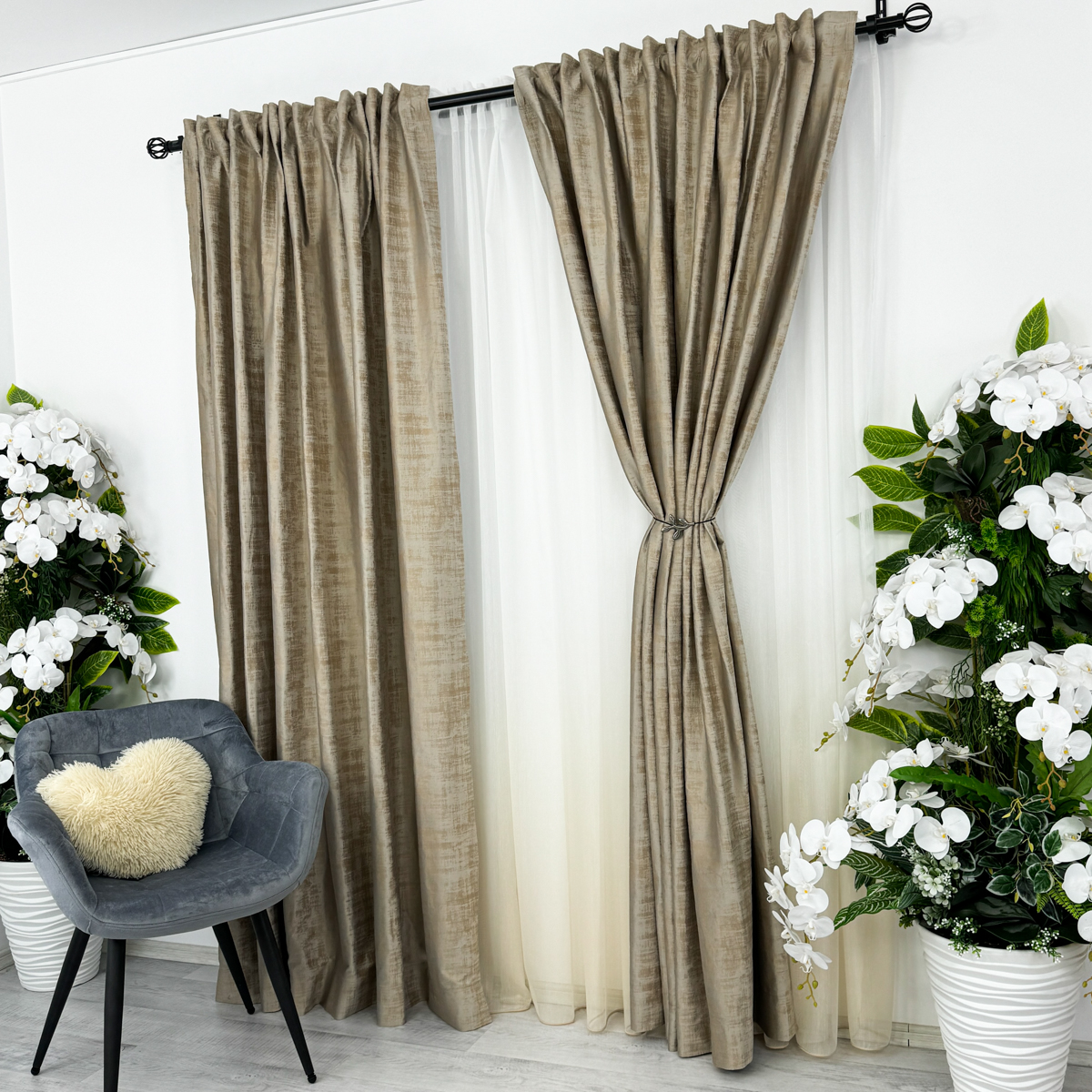 Set 2 Draperii Catifea cu model Venti, Bej Nisip, 140cm latime x 260cm inaltime, cu tiv lat