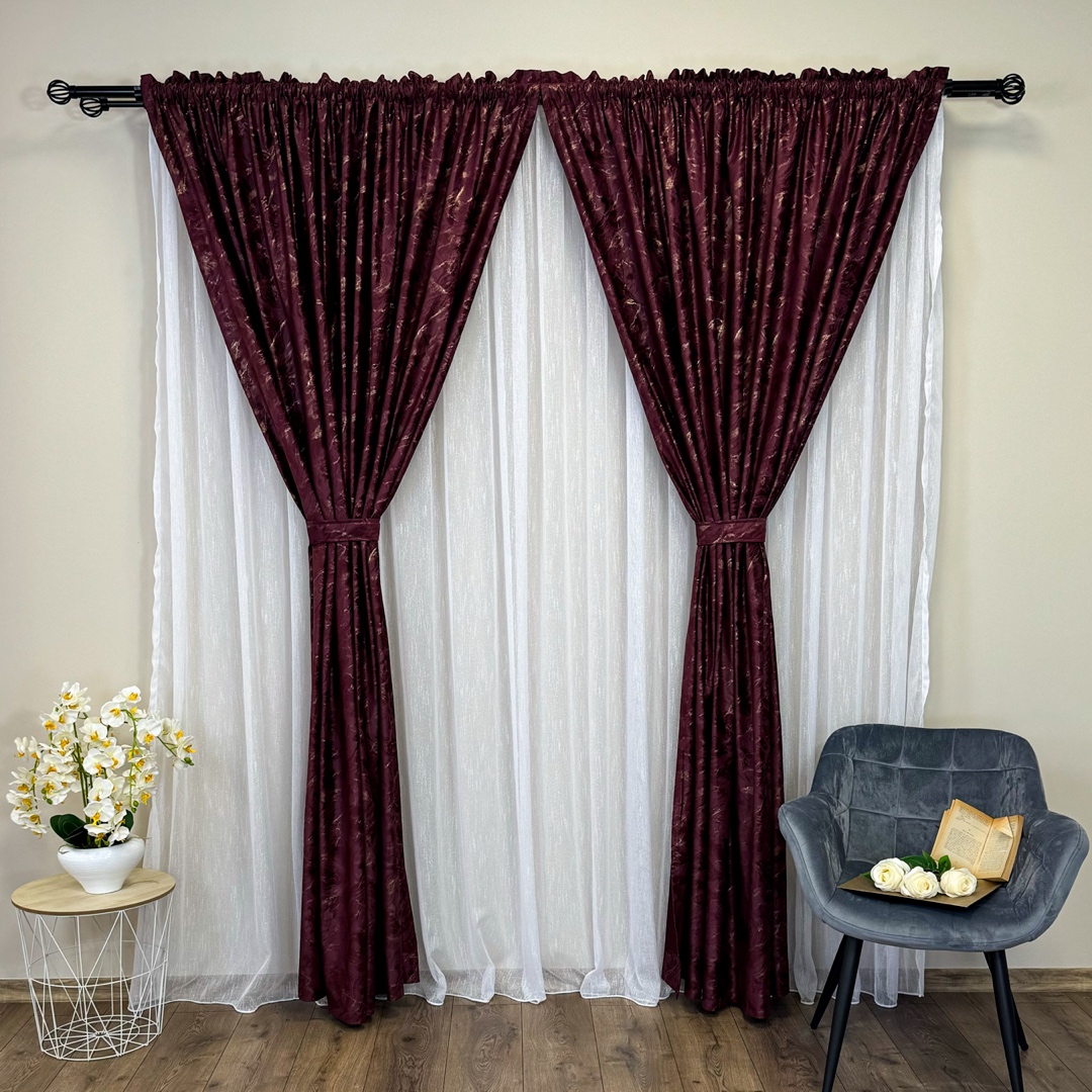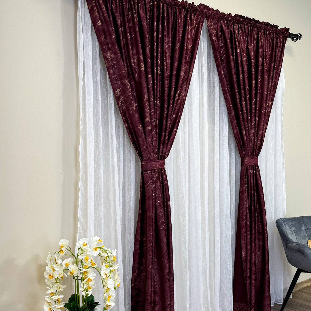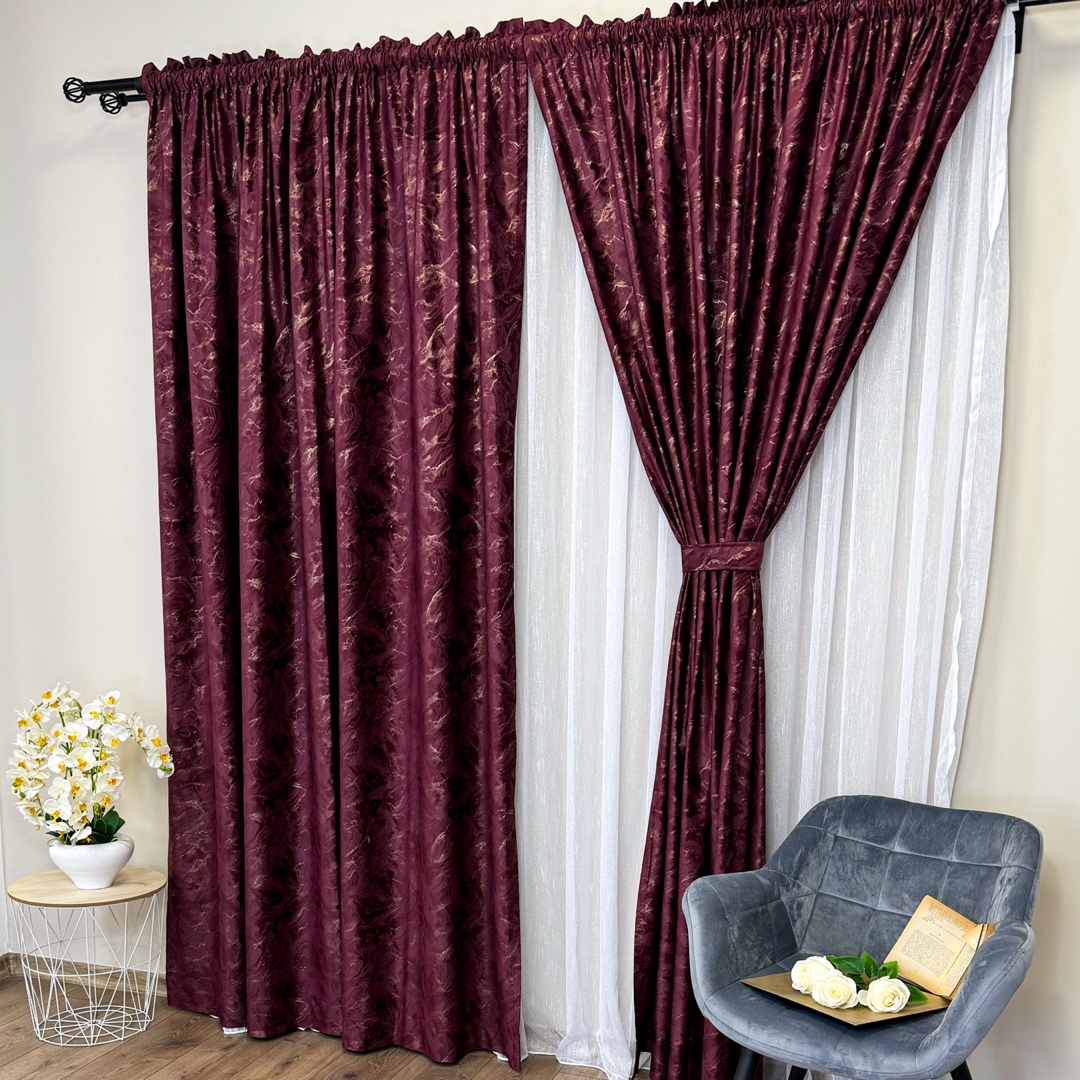 Draperiile din catifea cu insertii aurii reprezinta o alegere sofisticata si luxoasa pentru orice incapere. Aceste draperii sunt confectionate dintr-un material de inalta calitate, catifea, care ofera o textura moale si bogata, aducand un sentiment de rafinament si eleganta in orice spatiu. Ceea ce face draperiile cu insertii aurii cu adevarat remarcabile sunt detaliile aurii. Aceste insertii aurii adauga un element de stralucire si glamour, creand un contrast elegant cu textura mata a