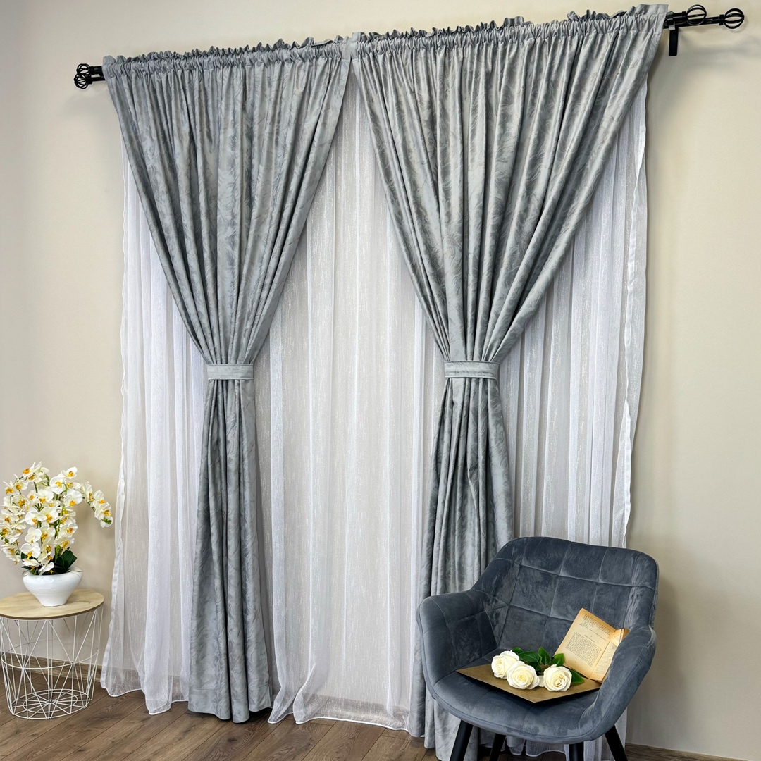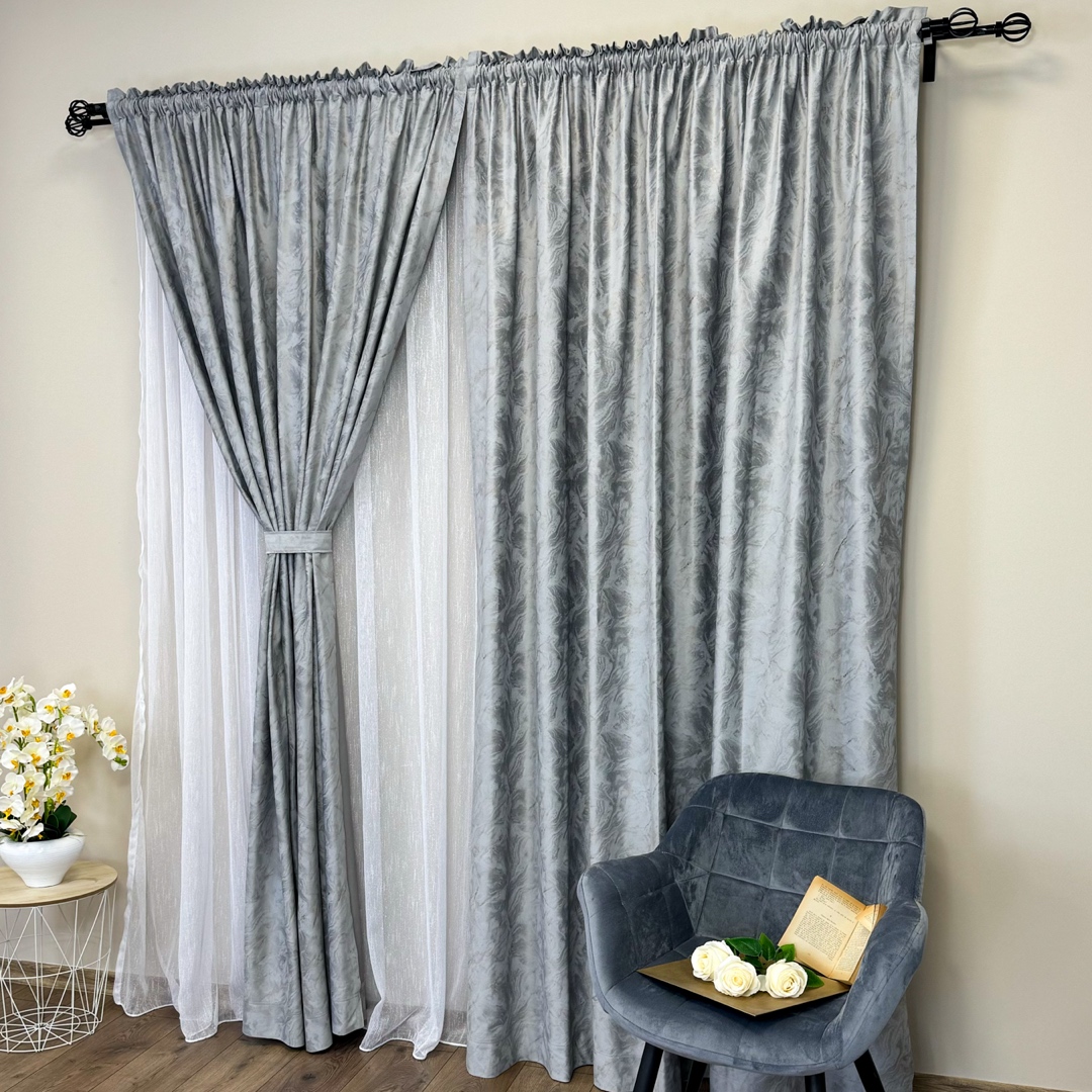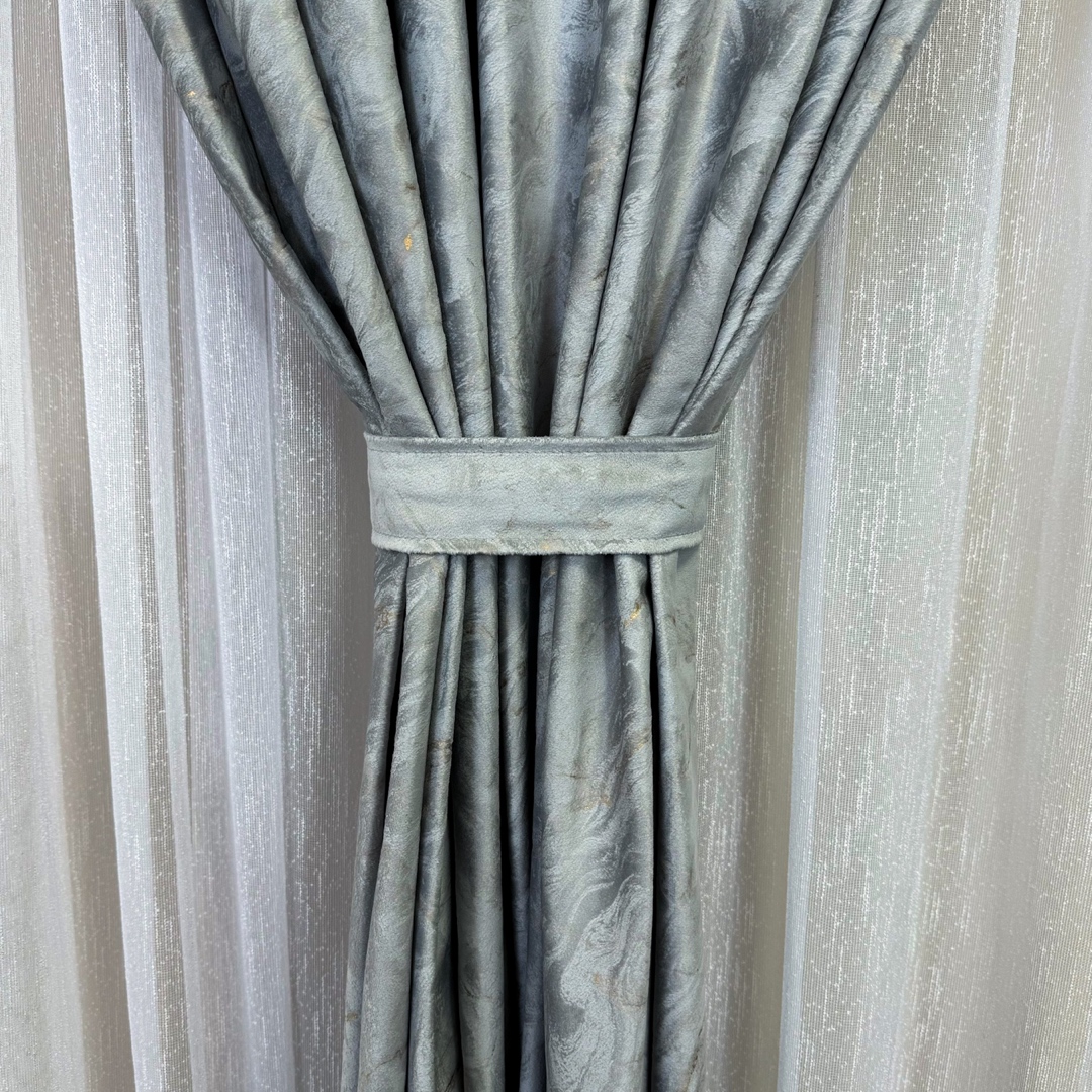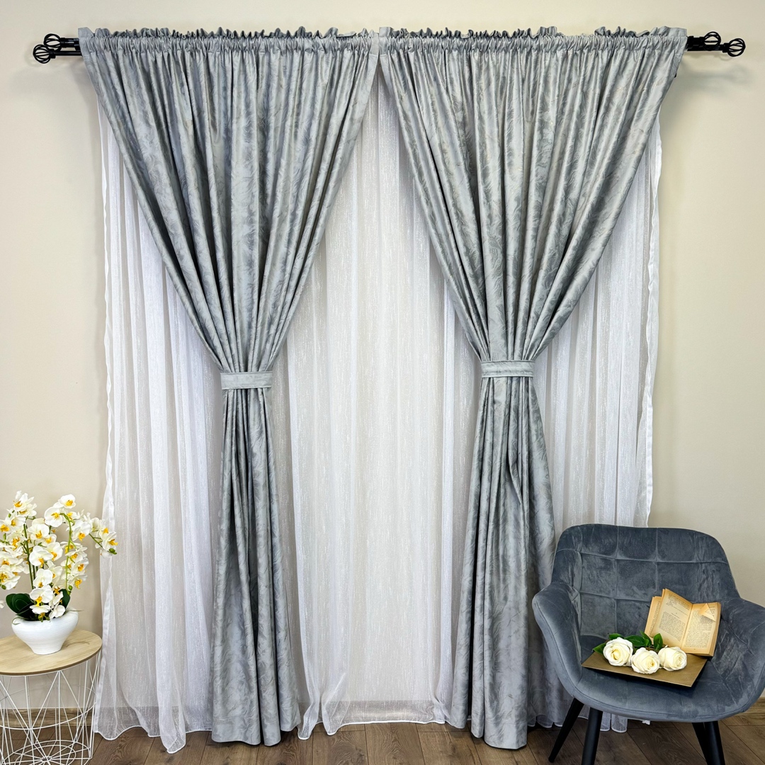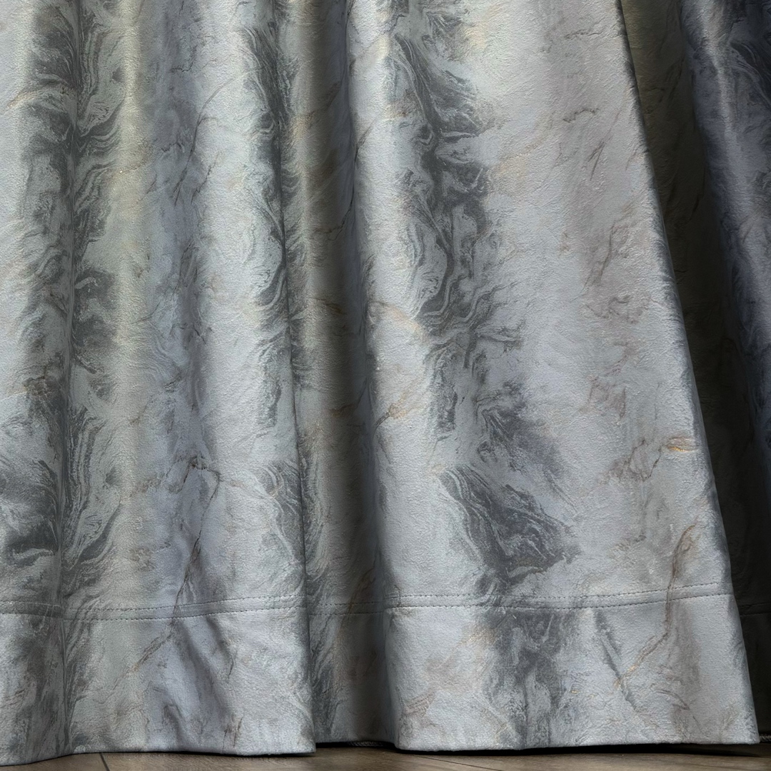 Set 2 Draperii Catifea MYKONOS cu valuri rafinate aurii, Gri deschis - V12, 140cm latime x 260cm inaltime cu tiv lat pt bara