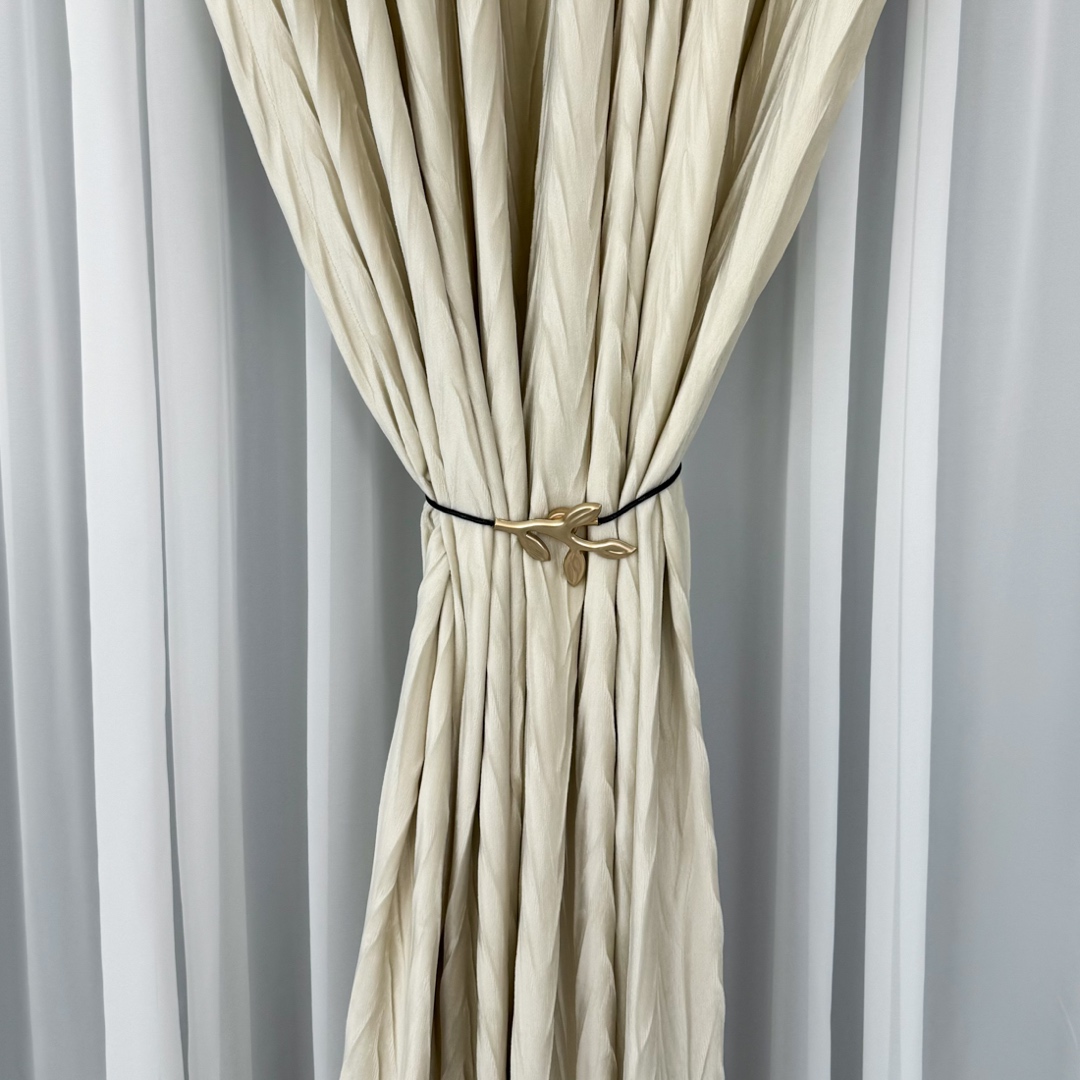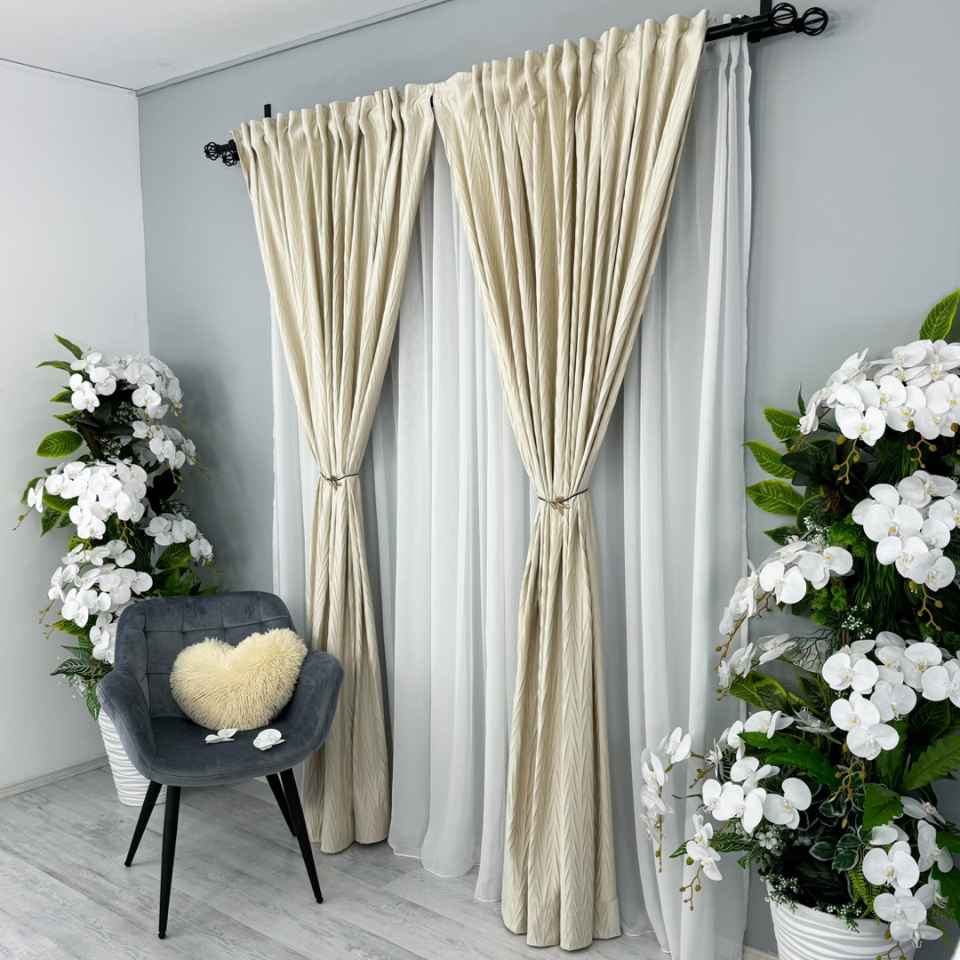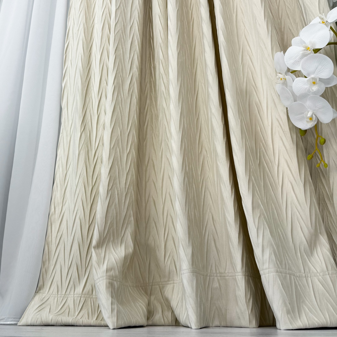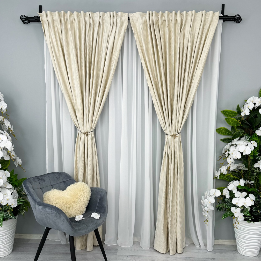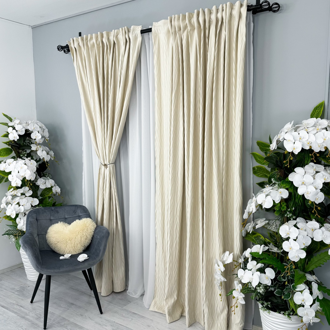 Set 2 Draperii din Catifea Plisata cu opacitate ridicata, Crem, 140cm latime x 260cm inaltime, cu tiv lat pt bara