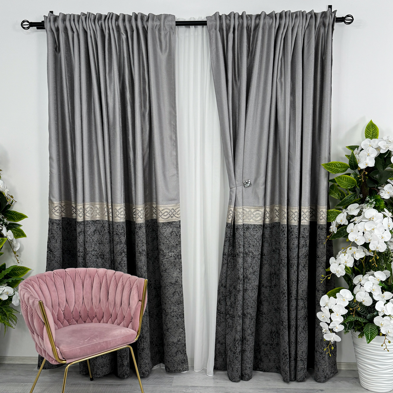 Draperiile tip panou reprezinta o alegere sofisticata si luxoasa pentru orice incapere. Aceste draperii sunt confectionate dintr-un material de inalta calitate, care ofera o textura moale si bogata, aducand un sentiment de rafinament si eleganta in orice spatiu. Materialul este dens, dispus in panouri a cate 3 metri latime. Datorita intervalului de repetare a modelului, materialul poate fi taiat doar in multiplii de 3metri. Ceea ce face draperiile cu adevarat remarcabile sunt detaliil