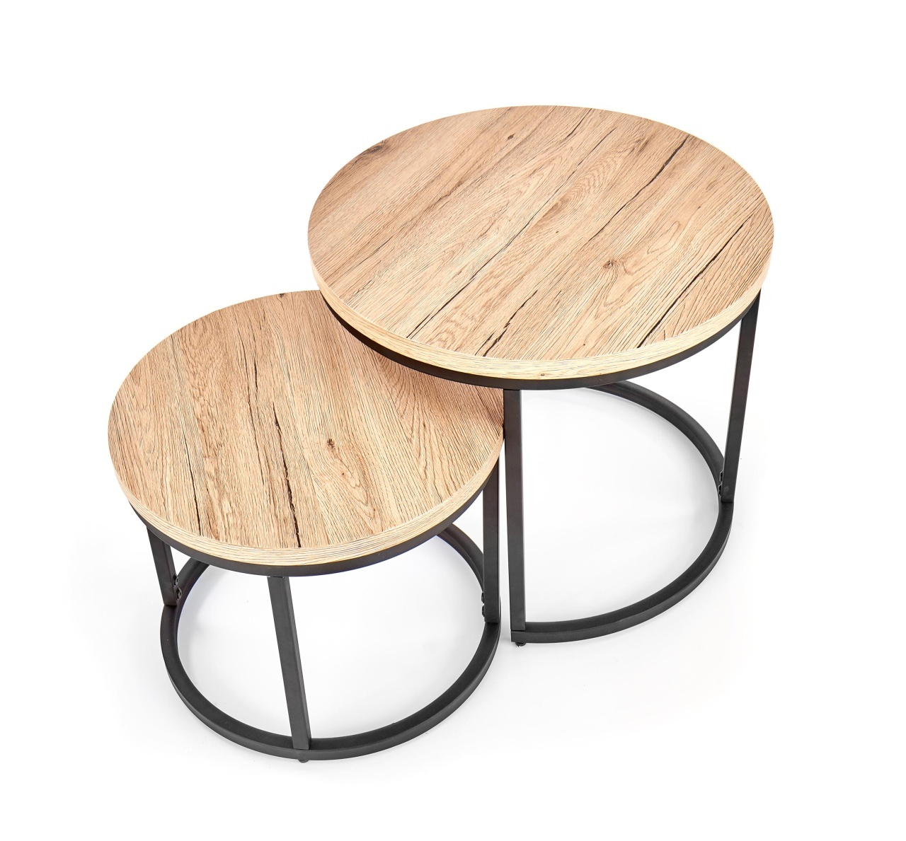 Set 2 mese de cafea Oreo - d 43-53 x h 35-45 cm Set 2 mese de cafea Oreo - realizate din MDF laminat si otel. In stil modern, aceasta masa aduce un plus de eleganta casei tale! Dimensiuni: 35 cm 43 cm si 45 cm 53 cm Produsul nu este montat, este destinat pentru auto-asamblare. Instructiunile de montaj vin in colet.