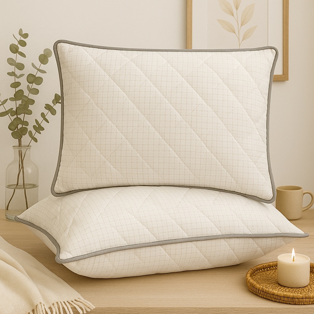 Set 2 perne dreptunghiulare matlasate la masina speciala pentru matlasare ultrasonica, fara cusaturi, cu model inedit si rezistent. Perne premium cu umplutura de aproximativ 800gr/bucata, din puf siliconizat si fata din microfibra cu aspect catifelat ce ofera o senzatie deosebita de confort. Compozitie exterior: microfibra emboss Compozitie interior: puf siliconizat, lejer, pliabil si usor de aranjat, nu se strange si nu face cocoloase Dimensiune: 50 x 70 cm