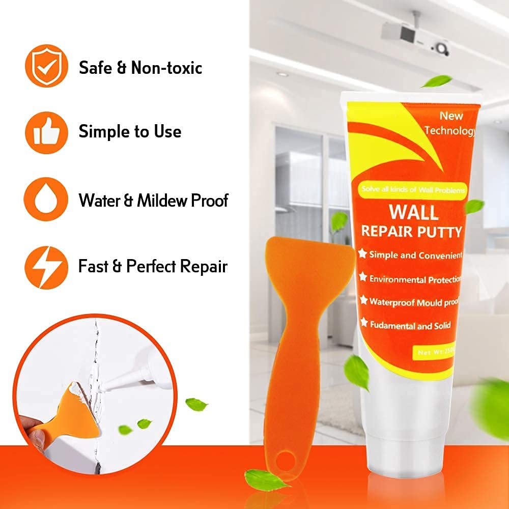 Kit instant pentru reparat peretii, crema alba reparatoare ✓ Usor de reparat, rapid si convenabil. ✓ Foloseste-l pentru o varietate de proiecte acasa. ✓ Tot ceea ce ai nevoie pentru a finaliza reparatii mici. ✓ Nu dauneaza in vreun anume fel. ✓ Gramaj: 100 grame / tub Tot ce ai nevoie pentru repararea peretilor - totul cu un kit usor de folosit. Produsul aplicat peste peretele ce necesita a fi reparat, creeaza un plasture de uscare rapida. Se usuca rapid pentru a tine un cui sau surub in locul in care este folosit kitul. Iar repararea va fi practic invizibila, oferindu-ti apoi rezultate profesionale.  Kit-ul pentru reparat peretii instant va acoperi orice fisuri ori urme lasate pe pereti. De multe ori schimbam locul obiectelor de mobilier in casa astfel ca urmele lasate de cuie in pereti si marginile peretilor atinsi de mobilier mutat nu va mai fi o problema.  Repara peretii fara ajutor profesional! Simplu - totul cu un singur kit usor de folosit. Fisuri, urme de pete, var cazut sau crapat? Rezolva rapid toate aceste probleme! Odata aplicat, se usuca rapid si va putea sustine un cui sau chiar si un surub. In plus, daca este aplicat bine, reparatia va fi practic invizibila, oferindu-ti astfel rezultate profesionale.