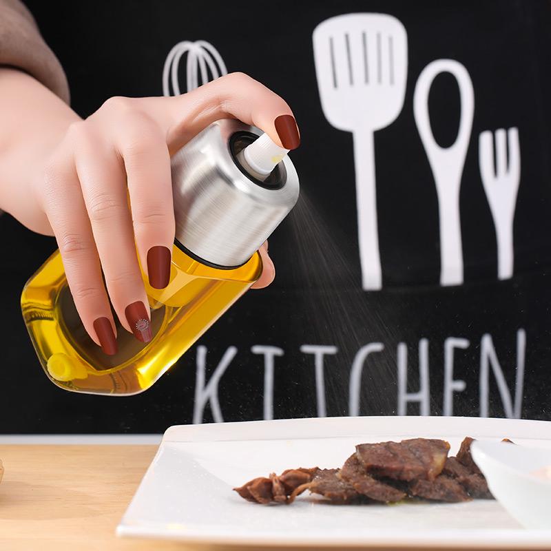 Set 2 x Pulverizator ulei/otet, sticla, 180 ml Pulverizeaza cu usurinta ulei peste preparate sau vasele de gatit. Acest dispozitiv practic pentru ulei este fabricat din sticla si pulverizeaza cantitatea potrivita de ulei la simpla apasare a unui buton. Mai sanatos, mai economic, pulverizatorul face gatitul mai practic si are grija de excesul de calorii. Daca esti in cautare de un pulverizator pentru ulei care sa arate la fel de bine pe cat functioneaza, l-ai gasit. Acest pulverizator compact si practic este conceput pentru a dispersa orice lichid in mod uniform peste mancare sau vase de gatit. Trebuie doar sa apesi pe buton, pentru pulverizare uniforma peste salata sau alte mancaruri. Spray-ul pentru ulei/otet este fabricat din sticla de 2.8 mm grosime, cu capac din otel inoxidabil si capac de acoperire fara BPA. Pulverizaroul este reutilizabil si are o capacitate de 180 ml (15 x 5.5 x 5.5 cm). Dispozitivul este potrivit pentru ulei, otet, sos de soia sau vin. Fabricat din sticla (material 100 % natural), pulverizatorul ofera un gust pur, curat, autentic al lichidelor si este perfect din punct de vedere igienic. Duza de presare cu unghi mare de pulverizare pentru operare usoara si distributie uniforma a lichidului cetos. Design ergonomic pentru cei care au probleme cu articulatiile mainilor. Doza perfecta de ulei aburit sau orice alt lichid doar la o singura apasare.