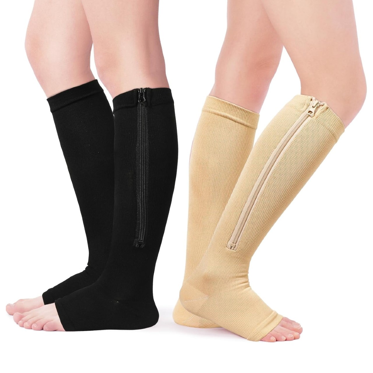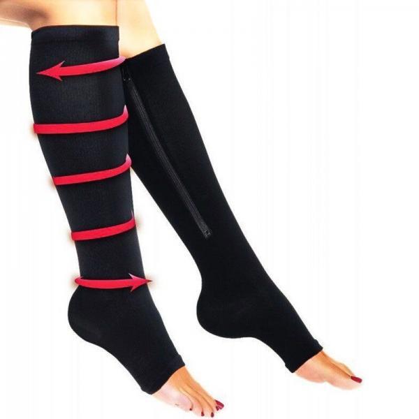 Sosete compresive pentru varice Ciorapi medicinali care stimuleaza circulatia sangelui Sosetele cu compresie calmeaza, maseaza si energizeaza picioarele chiar toata ziua, in acest fel stimuleaza circulatia sangelui si reduce unflarea picioarelor. Sosetele speciale vin in ajutorul celor care se lupta cu insuficienta venoasa. Deosebit de confortabile, invizibile sub haine! Sunt prevazute cu fermoar, astfel se pot incalta si descalta foarte usor. Concepute cu design fara degete, dintr-un material moale elastic, care respira, se pot folosi in aproape orice tip de incaltaminte, fie pantofi de incalzire, cizme sau pantofi. pentru sanatatea dumneavoastra calmeaza si revitalizeaza picioarele deosebit de confortabili se pot purta in orice tip de incaltaminte concepute cu design fara degete Pachetul contine: 2 sosete - 1 pereche S/M corespondent marimi 35 - 39 L/XL orespondent marimi 40 - 44 Culori disponibile: negru, bej ZipSox calmeaza, maseaza si energizeaza picioarele chiar toata ziua, in acest fel stimuleaza circulatia sangelui si reduce unflarea picioarelor. Sosetele compresive sunt ajutorul celor care se lupta cu insuficienta venoasa. in plus va ajuta la alinarea durerilor in picioare. Deosebit de confortabili, invisibili sub haine! Ciorapii medicinali ZipSox sunt prevazuti cu fermoar, astfel se pot incalta si descalta foarte usor. Concepute cu design fara degete, dintr-un material moale elastic, care respira, se pot folosi in aproape orice tip de incaltaminte, fie pantofi de incalzire, cizme sau pantofi. Sosete compresive cu fermoar Greutate pachet: 296 grame