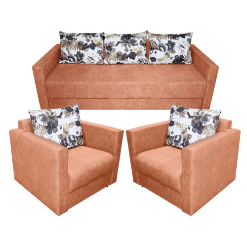 Setul 3+1+1 Croma este alcatuit dintr-o canapea cu 3 locuri si 2 fotolii fixe. Canapeaua Croma este o canapea moderna conceputa pentru un stil de viata activ fiind foarte usor de extins si de strans. Canapeaua Croma cu 3 locuri are brate inguste pentru o incadrare cat mai eficienta in camera pastrand suprafata generoasa de dormit atunci cand este extinsa. Canapeaua Croma este extensibila putand fi utilizata zilnic atat ca si canapea pentru petrecerea timpului liber cat si ca un pat generos pe timpul noptii. Suprafata de dormit este 140 * 190 cm. Canapeaua Croma are saltele cu plasa de arcuri (tip Relaxa) si burete de densitate mare pentru o rezistenta sporita in timp, iar datorita suprafetei plane care se formeaza atunci cand se extinde asigura un somn odihnitor pe timpul noptii. Atat canapeaua cat si pernele sunt tapitate cu stofa. Canapeaua Croma are o lada de depozitare generoasa foarte practica atat pentru lenjeria de pat, cat si pentru diverse obiecte pe care le folositi rar. Sezutul in varianta stransa are o latime generoasa de 70 cm si poate fi folosit de o persoana in timpul zilei pentru un pui de somn fara a mai fi nevoie sa extindeti canapeaua. Canapeaua Croma are 3 perne pufoase foarte utile pentru o sedere cat mai confortabila pe canapea, dar si pentru o pata de culoare. Canapeaua Croma este foarte usor de montat avand elemente de cuplare rapide. Canapeaua Croma este prevazuta cu un peretar prins intre brate care ramane la perete atunci cand canapeaua este extinsa si este folosita pentru dormit. Peretarul protejeaza peretele si asigura un confort sporit pentru persoana care va dormi la perete. Dimensiuni canapea Croma stransa: Lungime: 2110 mm Adancime: 990 mm Inaltime: 710 mm Suprafata de dormitor canapea Croma: 1400 x 1900 mm Fotoliul Croma este un fotoliu modern conceput pentru un stil de viata activ. Fotoliul Croma are saltea cu plasa de arcuri (tip Relaxa) si burete de densitate mare pentru o rezistenta sporita in timp. Atat fotoliul cat si perna sunt tapitate cu stofa. Fotoliul Croma are o perna pufoasa foarte utila pentru o sedere cat mai confortabila pe fotoliu, dar si pentru o pata de culoare. Fotoliul Croma este foarte usor de montat avand elemente de cuplare rapide. Dimensiuni fotoliu Croma: Lungime: 860 mm Adancime: 780 mm Inaltime: 700 mm