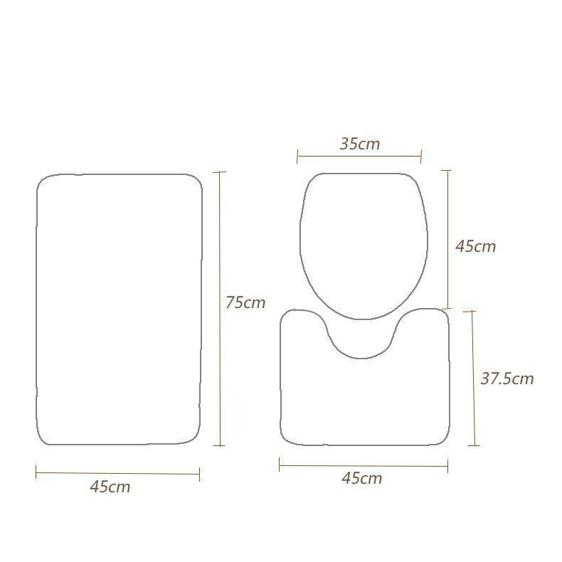 Set 3 Covorase de baie FizioTab, antiderapante Model Fluturi Multicolor Material: flannel si polyester Covorase moi si confortabile Absorb usor apa si praful Suprafata Antialunecare Print de calitate, model pene, in culori vii si vesele Grosime: 0,8 cm ± 5% Setul contine: 1 x covoras vana (750 X 450mm) 1 x covoras contur toaleta (440 X 450mm) 1 x covoras protectie capac de toaleta (450 X 380mm) Usor de curatat: Spalare manuala: inmuiati in apa 10 minute apoi adaugati detergentul si frecati usor cu o perie. Spalare in masina: a se spala in apa rece. Nu spalati impreuna cu alte haine! Nu folositi inalbitori si nu curatati chimic. Calcati daca este necesar, la temperatura joasa. Perdeaua de dus NU face parte din set!