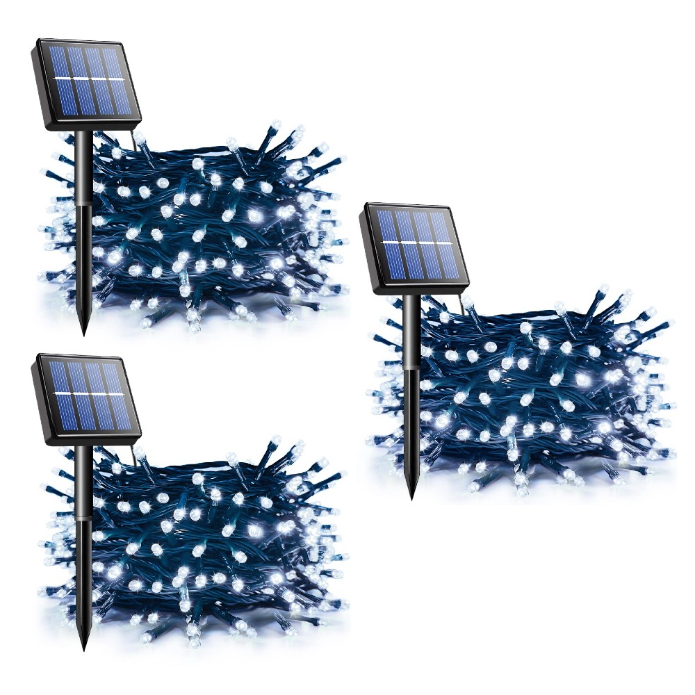 Set 3 x Instalatie LED pentru exterior cu incarcare solara 100 LED Aceasta instalatie se monteaza in exteriorul casei, dispunand de un mic panou solar care permite incarcarea pe timpul zilei si de un sensor de lumina, ce o face sa functioneze pe timpul noptii. Este ideala pentru orice anotimp si orice fel de eveniment: Craciun, Anul Nou, aniversari, nunti, botezuri, petreceri. lungime 10 metri 100 leduri panou solar 2V, 170mA sursa lumina LED timp incarcare complete: 6-8 ore timp de functionare: 8 ore in modul static si 10 ore in modul clipire buton On/Off temperatura de lucru: minus 20- plus 60 grade Celsius panoul solar este acoperit cu o folie protectoare ce trebuie dezlipita inainte de utilizare culoare disponibila: ALB Atentie! a nu se lasa la indemana copiilor. a se feri de surse de caldura. a nu se scufunda in apa.