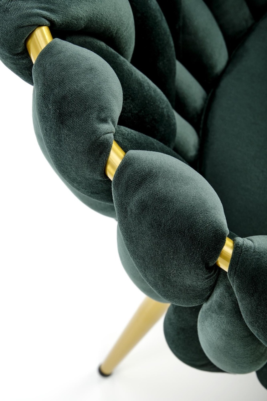 Scaun K517 velvet verde va fi perfect pentru interioare decorate într-un stil glamour. Este o piesă de mobilier elegantă, care va fi un plus de eleganță și funcțional pentru sufragerie sau dining. Un scaun conceput pentru a oferi încântare ochilor și momente fericite de relaxare. Tapițeria din catifea moale și delicată, face scaunul total diferit și original. Dimensiuni: Lățime: 57 cm Adâncime: 60 cm Înălțimea totală: 79 cm Înălțimea șezutului față de sol: 49 cm Detalii tehnice: Cadrul este realizat din metal. Tapițeria este confecționată din catifea. Culoare: Verde / auriu Produsul nu este montat, este destinat pentru auto-asamblare. Instructiunile de montaj vin in colet.