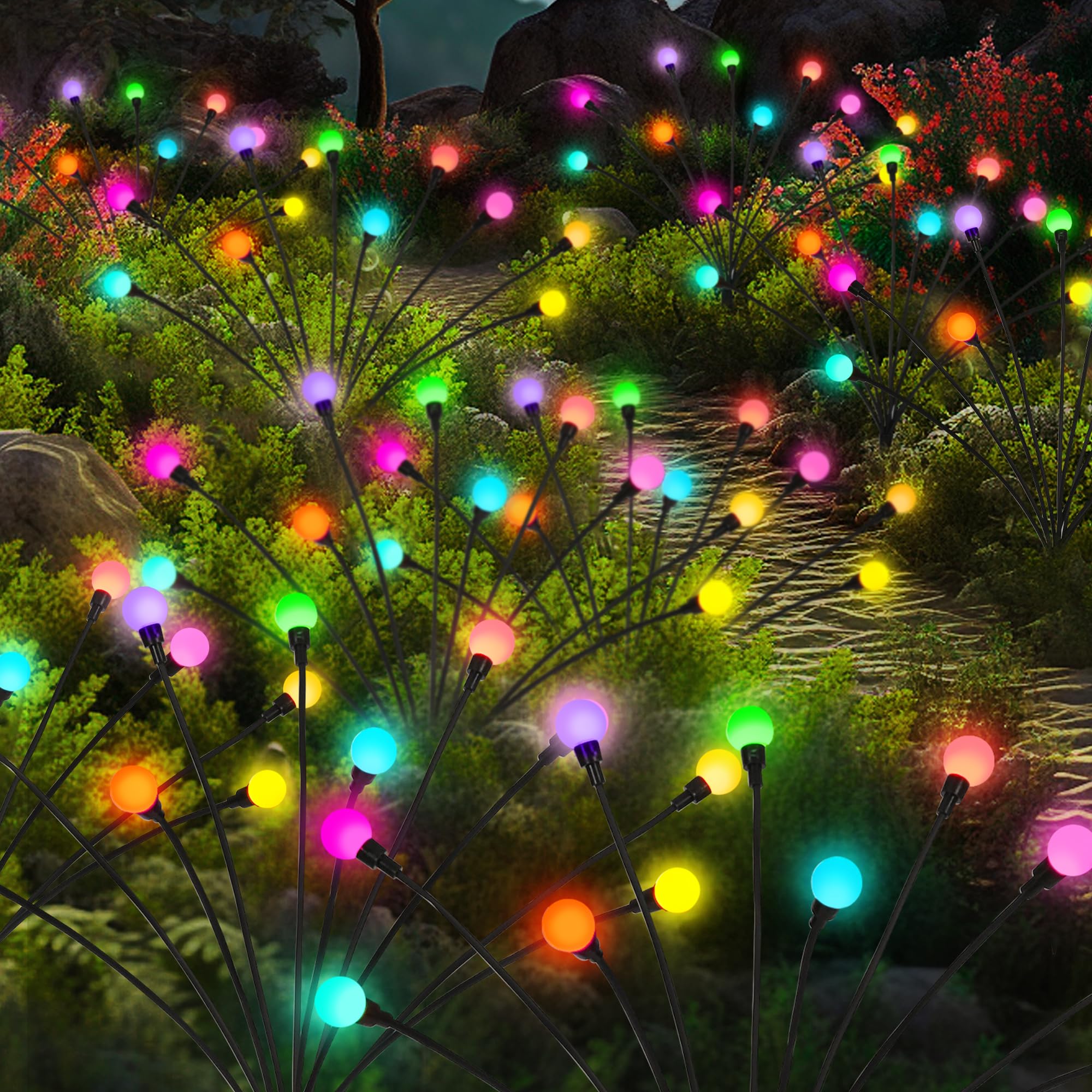 Lampa solara LED tip licurici Decoratiune gradina cu 6 bulbi, Multicolor Tip baterie: baterie NiMH 600 mAh Grad de impermeabilitate: IP65 Timp de incarcare: 6-8 ore Timp de iluminare: aproximativ 8 ore Dimensiunea produsului: 60 cm Material produs: plastic ABS