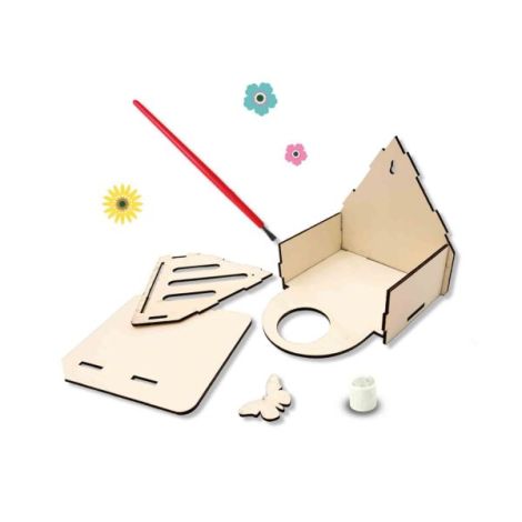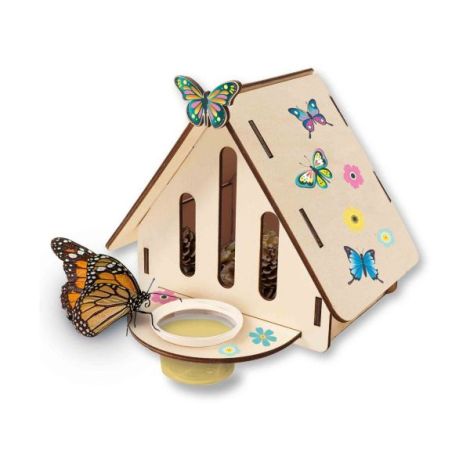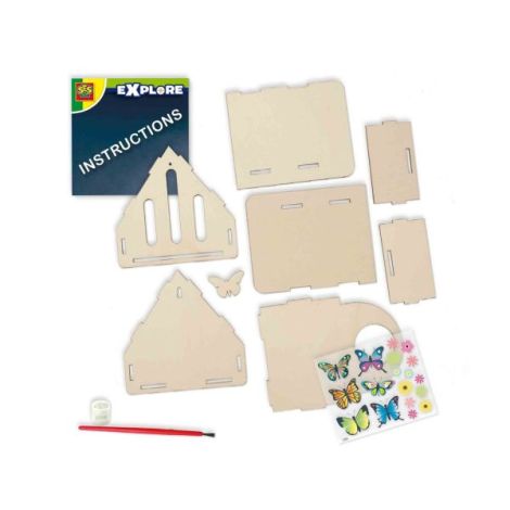 Hotelul pentru fluturi va face ca fluturii reali sa aiba un loc sigur in curtea din spate sau balcon! Copiii pot creea acest hotel pentru fluturi singuri.Aceasta jucarie STEM nu este doar foarte distractiva, ci si educativa. Hotelul pentru fluturi este realizat din materiale durabile. Prin colectarea materialelor naturale pentru a le pune in hotel si turnarea siropului in recipient cei mai frumosi fluturi vor fi atrasi de hotelul de fluturi auto-construit.Contine: piese din lemn pentru hotel; lipici; perie; recipient pentru sirop; foaie cu autocolante fluturi; instructiuni.Dimensiuni: 20 x 20 x 4 cm.