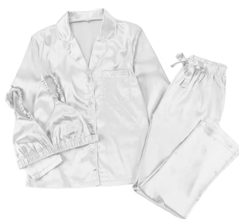 Set dama, Pijama satin 3 piese, Alb Marime disponibila: S, M, L, XL Transforma noptile obisnuite in momente speciale cu setul nostru de pijamale din satin de 3 piese, disponibil in culorile rafinate de roz, negru si visiniu. Confectionat din satin de inalta calitate, acest set ofera o senzatie placuta si racoroasa pe piele, asigurand un somn linistit si confortabil. Material Premium: Satinul de inalta calitate ofera o textura moale si matasoasa, asigurand confortul pe parcursul noptii. Design Elegant: Setul include o bluza cu maneca lunga si nasturi, pantaloni lungi si un sutien tip bustiera, fiecare piesa avand un design rafinat care combina functionalitatea cu stilul. Marimi Variate: S, M, L, XL Pentru a se potrivi perfect oricarui tip de corp, asigurand un fit ideal. Detalii Bluza: Maneci Lungi: Ofera un plus de caldura si confort in serile mai racoroase. Nasturi in Fata: Permite o imbracare si dezbracare usoara si adauga un element de eleganta. Detalii Pantaloni: Lungime: Pantaloni lungi, croiti pentru a oferi libertate de miscare. Talie Elastica: Asigura un fit perfect si confortabil pe tot parcursul noptii. Detalii Sutien Bustiera: Design fara armaturi, pentru un confort maxim pe timpul noptii. Banda elastica ofera suport suplimentar si se adapteaza formei corpului pentru un fit perfect. Fie ca alegi sa porti acest set pentru o noapte de somn odihnitor sau pentru o seara relaxanta acasa, vei arata si te vei simti fabulos. Imbina confortul cu stilul si adauga acest set de pijamale din satin la garderoba ta de noapte.
