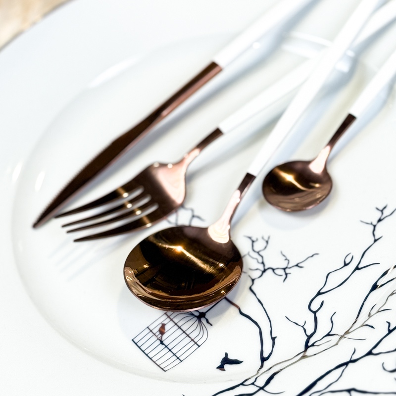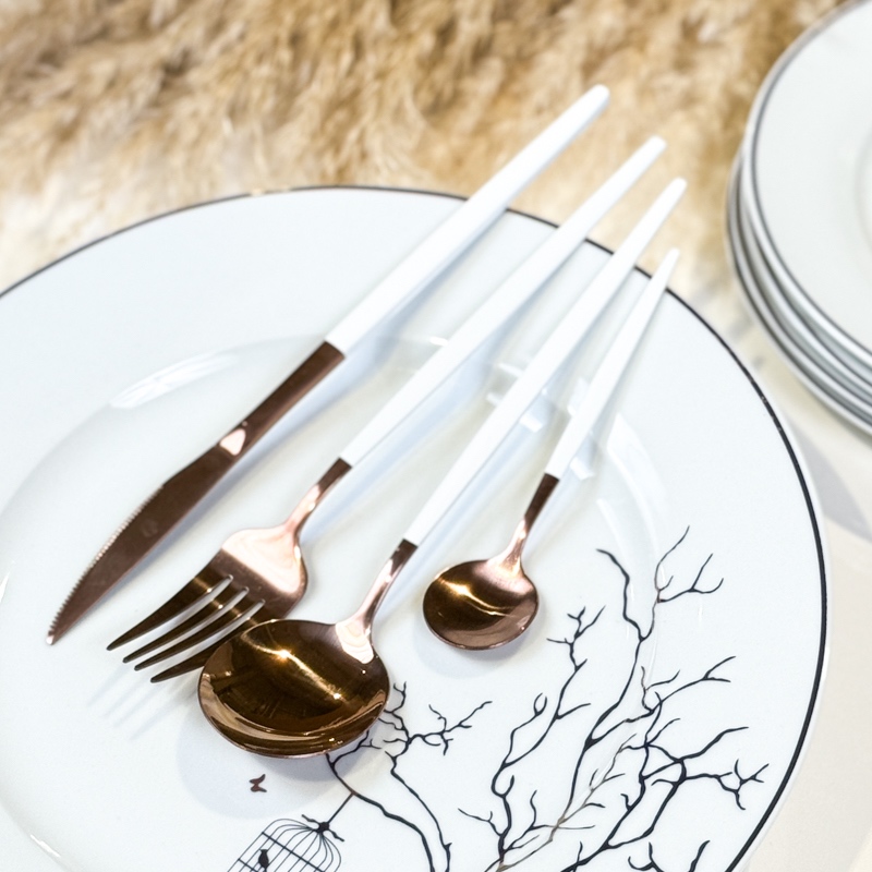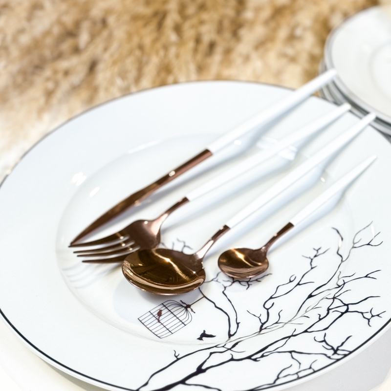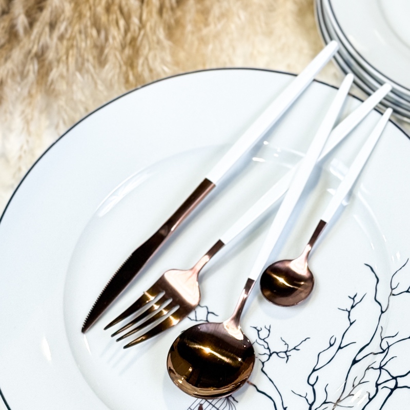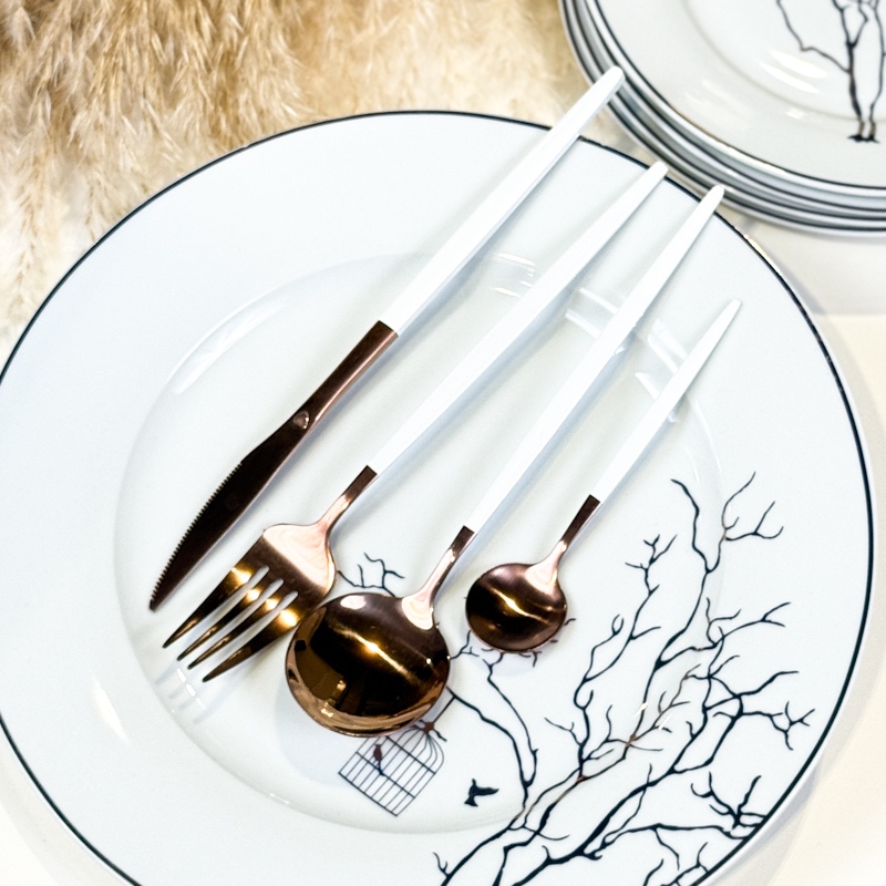 Set de Tacamuri Portugheze, 24 de piese, Auriu Rose si Alb lucios