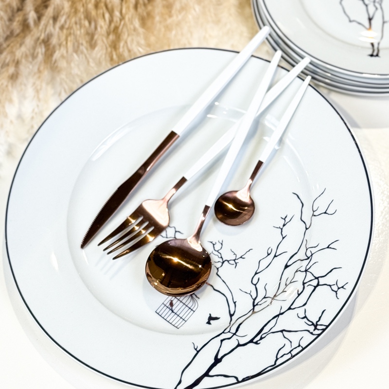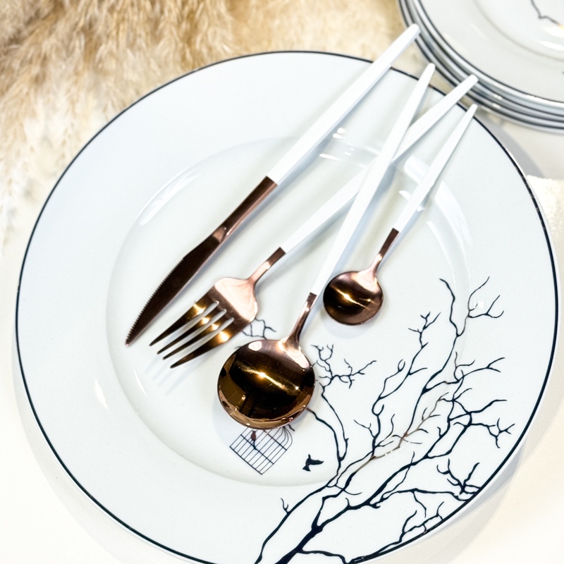 Set tacamuri din otel inoxidabil pentru 6 persoane – design modern, eleganta portugheza     Transforma fiecare masa intr-o experienta deosebita cu acest set de tacamuri din otel inoxidabil de calitate superioara, inspirat de rafinamentul designului portughez. Perfecte atat pentru mesele zilnice, cat si pentru ocazii speciale, tacamurile imbina eleganta, durabilitatea si confortul in utilizare.      Design sofisticat si calitate premium     Fabricate din otel inoxidabil rezistent, tacam