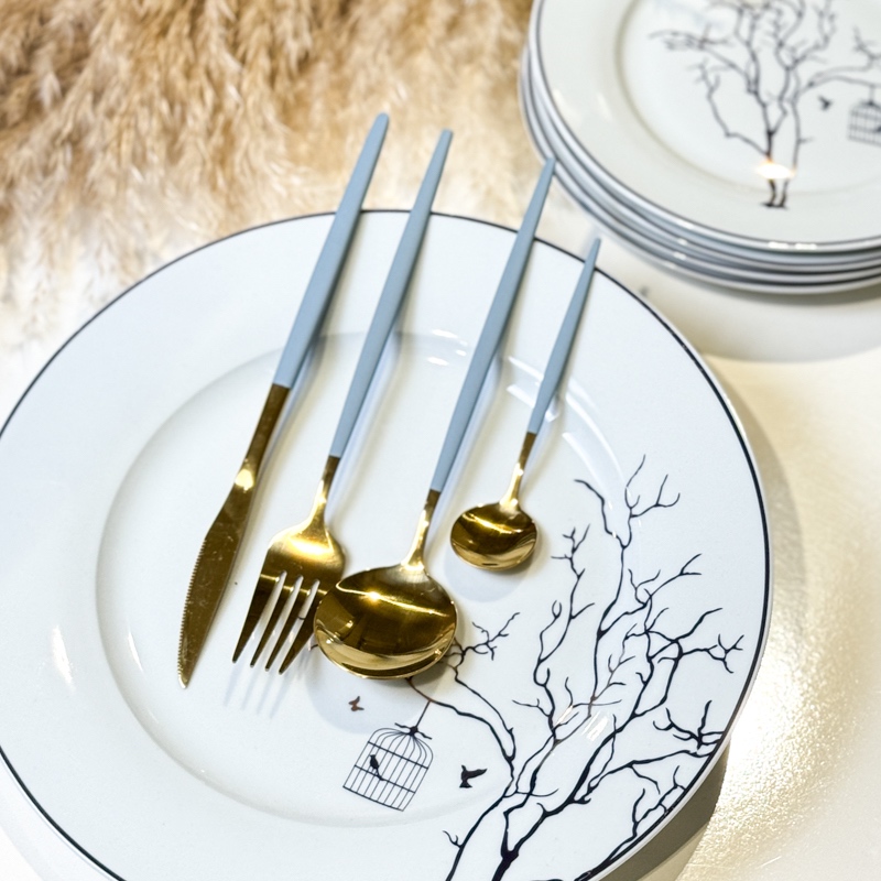 Set tacamuri din otel inoxidabil pentru 6 persoane – design modern, eleganta portugheza Transforma fiecare masa intr-o experienta deosebita cu acest set de tacamuri din otel inoxidabil de calitate superioara, inspirat de rafinamentul designului portughez. Perfecte atat pentru mesele zilnice, cat si pentru ocazii speciale, tacamurile imbina eleganta, durabilitatea si confortul in utilizare. Design sofisticat si calitate premium Fabricate din otel inoxidabil rezistent, tacam