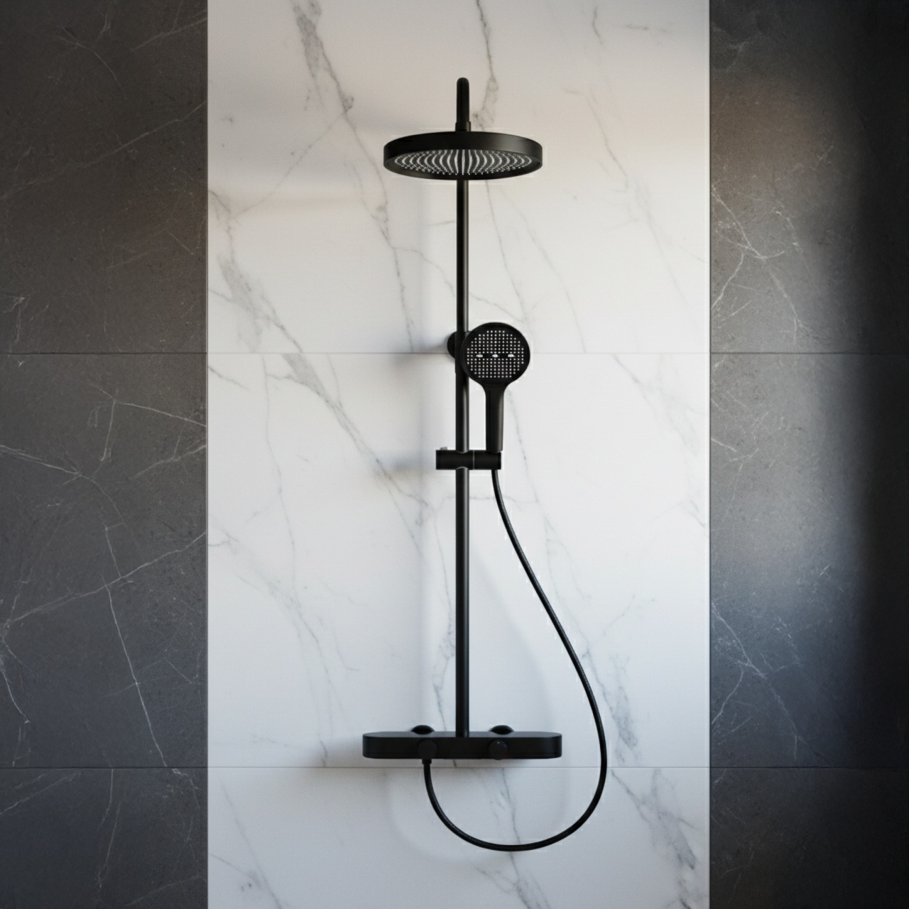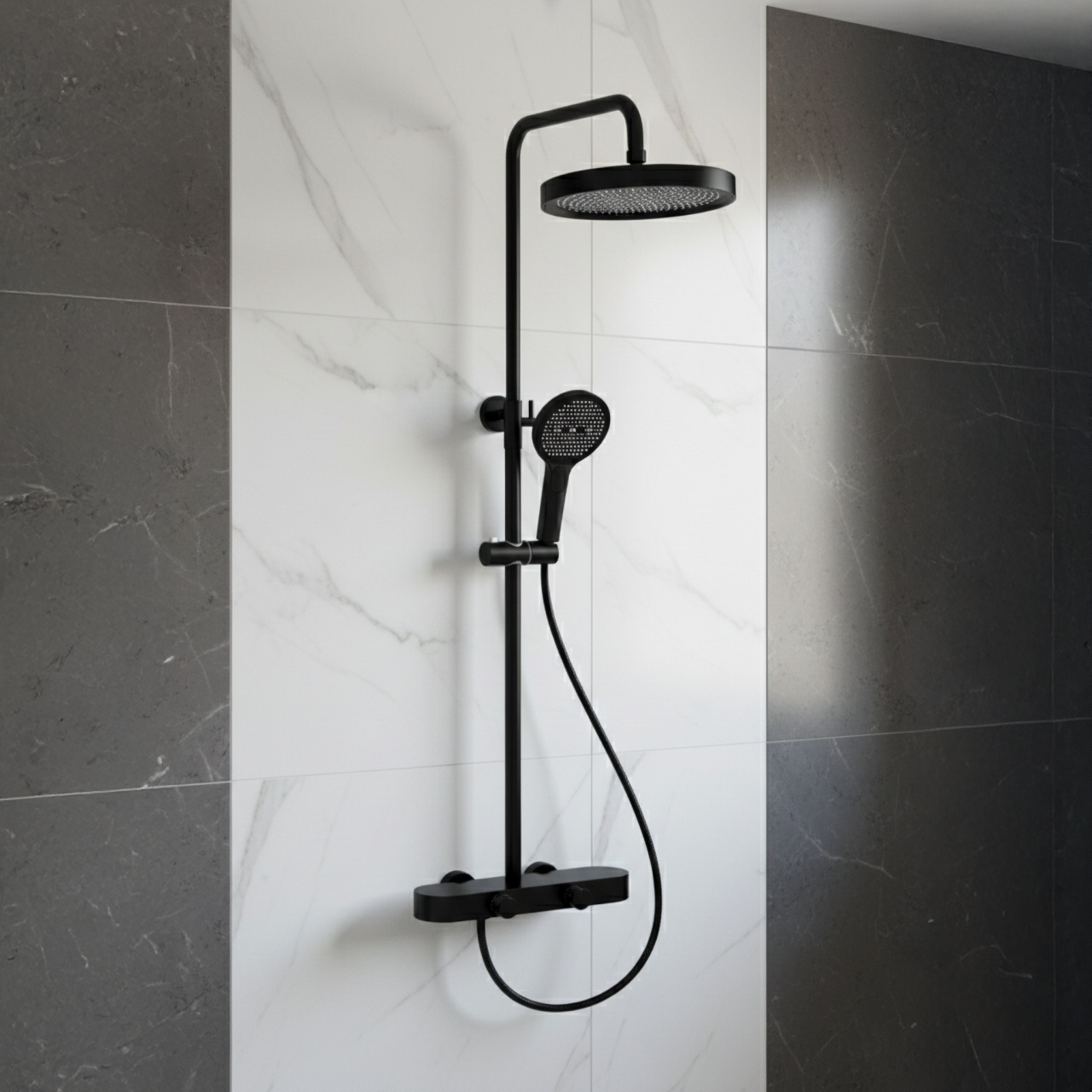 Set de duș REA Creo Black este o soluție modernă aplicată, care îmbină negrul mat elegant cu confortul utilizării zilnice. Modelul a fost proiectat cu accent pe funcționalitate și estetică, integrându-se perfect în amenajări moderne, loft și industriale.Reglare lină prin manete – bateria este echipată cu două manete ergonomice. Prima permite reglarea precisă și comodă a temperaturii apei, iar a doua comută modurile jetului între dușul fix, para de duș și pipă.Pară de duș cu funcție Bidetta – para practică are un buton pe partea din spate a carcasei și un orificiu suplimentar în partea superioară. După activare, poate funcționa ca bideu de mână, facilitând clătirea rapidă a cabinei, spălarea cădiței sau umplerea unei găleți înalte.Pipă cascadă discretă – pipa de cadă integrată oferă un jet lat, în cascadă, util la spălarea mâinilor sau umplerea unui vas fără utilizarea parei de duș.Tehnologie Electroplating – negrul profund cu finisaj mat a fost obținut prin galvanizare. Stratul este neted, durabil și rezistent la umezeală și utilizare zilnică.Construcție solidă – corpul bateriei este realizat din alamă durabilă, ceea ce asigură stabilitate și durată lungă de viață. Dușul fix și para din ABS sunt ușoare, practice și ușor de întreținut.Confort de ajustare – bara cu reglare pe înălțime permite adaptarea poziției dușului fix la înălțimea utilizatorilor și la configurația zonei de duș.REA Creo Black este un set de duș bine gândit pentru persoanele care așteaptă un aspect modern și o utilizare comodă. Soluțiile funcționale și materialele durabile fac dușul zilnic mai confortabil și intuitiv. Culoare: Negru Material: Alamă, ABS Metodă de montaj: Suprafaţă Tip baterie: Monocomandă Înălțime min. : 870 Înălțime max.: 1280 Pipa cadă: Da, pivotantă Sistem Anti-Calc: Sistem Anti-Calc Tehnologia de acoperire: Electroplating Distanța dintre racorduri: 150 Garantie: 24 luni