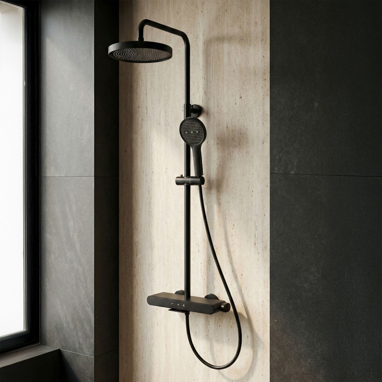 Descoperă un nou standard al dușului cu setul de duș aparent Rea Farel Black. Acest model este esența designului modern, îmbinând eleganța bateriei negre cu funcționalitatea inovatoare. În locul soluțiilor standard, Farel oferă control comod prin butoane și soluții unice care facilitează menținerea curățeniei în baie.Panou Piano intuitiv – inima setului este bateria echipată cu un sistem de butoane estetice (clape). Acestea permit comutarea rapidă și comodă a jetului de apă între para de duș fixă, para de mână și pipă.Pară de duș cu funcție Bidetta – o soluție revoluționară în armătura de duș. Para are un buton pe spatele carcasei și o ieșire suplimentară în partea superioară. După activare, se transformă într-un pulverizator tip bideu, ideal pentru clătirea rapidă a cabinei, curățarea cădiței sau umplerea unei găleți înalte.Pipă cascadă discretă – bateria are și o pipă de cadă integrată. Jetul lat de tip cascadă permite spălarea comodă a mâinilor sau umplerea unui bol, fără a folosi para de duș de mână.Tehnologie Electroplating – negrul mat profund a fost obținut prin galvanizare. Datorită acestui proces, acoperirea este perfect netedă, durabilă și mult mai rezistentă la deteriorări mecanice și umiditate decât vopsirea în câmp electrostatic tradițională.Construcție solidă – corpul bateriei este realizat din alamă durabilă, garantând stabilitate și fiabilitate în timp. Para fixă și para de mână din ABS asigură greutate redusă și curățare ușoară a duzelor de depunerile de calcar.Confort în utilizare – setul este echipat cu bară reglabilă pe înălțime, ceea ce permite adaptarea perfectă a parei fixe la înălțimea fiecărui membru al familiei și la dimensiunile cabinei de duș.Setul Rea Farel Black este alegerea ideală pentru băile moderne în stil loft și industrial. Construcția sa bine gândită face ritualurile zilnice mai simple. Culoare: Negru Material: Alamă, ABS Metodă de montaj: Suprafaţă Tip baterie: Monocomandă Înălțime min. : 870 Înălțime max.: 1280 Pipa cadă: Da, fixă Sistem Anti-Calc: Sistem Anti-Calc Tehnologia de acoperire: Electroplating Distanța dintre racorduri: 150 Garantie: 24 luni