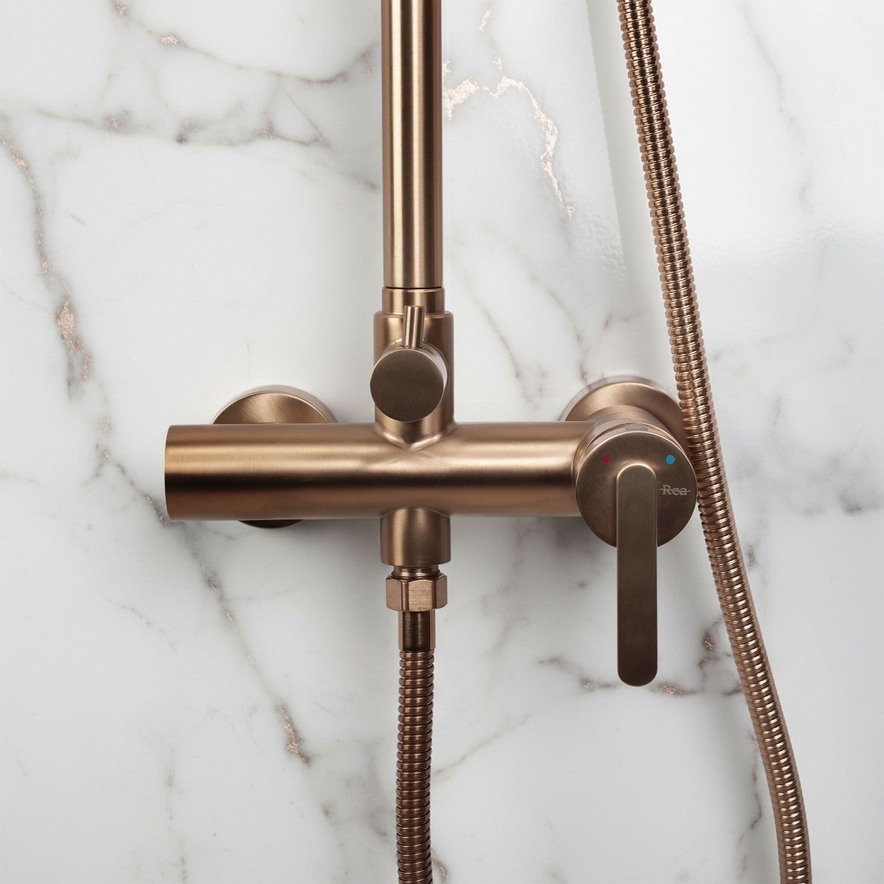 Descoperă dimensiunea luxoasă a dușului de zi cu zi cu setul de duș aparent Rea Ontario, care impresionează prin suprafața sa periată. Acest element elegant a fost proiectat pentru cei mai exigenți utilizatori, îmbinând estetica rafinată cu cea mai modernă tehnologie de finisare. Acoperirea PVD aplicată garantează nu doar un aspect impecabil, ci și o rezistență excepțională la zgârieturi și factori externi, astfel încât produsul își păstrează strălucirea ani la rând.Textură periată a suprafeței – oferă interiorului un caracter modern, mat, pe care se văd mai puțin urmele de apă și amprentele.Tehnologie de acoperire PVD – asigură durabilitate maximă a culorii și rezistență la deteriorări mecanice și coroziune.Pară de duș mare – oferă un jet larg și relaxant, pentru un moment de răsfăț ca într-un SPA profesionist.Duș de mână confortabil – permite spălarea precisă și facilitează curățarea zilnică a zonei de duș.Montaj aparent – permite o instalare eficientă și oferă băii un aer industrial, modern. Setul de duș aparent Rea Ontario este alegerea ideală pentru cei care caută soluții durabile, realizate la cele mai înalte standarde. Datorită combinației dintre para de duș și dușul de mână funcțional, fiecare duș devine o experiență confortabilă, adaptată nevoilor tale. Alegând un produs REA cu acoperire PVD, investești într-un design atemporal și într-o fiabilitate care va transforma baia ta pentru mulți ani. Culoare: Cupru periat Material: Alamă, ABS Metodă de montaj: Suprafaţă Tip baterie: Monocomandă Înălțime min. : 765 Înălțime max.: 1315 Pipa cadă: Nu Reglare a presiunii: Reglare a presiunii Sistem Anti-Calc: Sistem Anti-Calc Tehnologia de acoperire: PVD Distanța dintre racorduri: 150 Garantie: 24 luni
