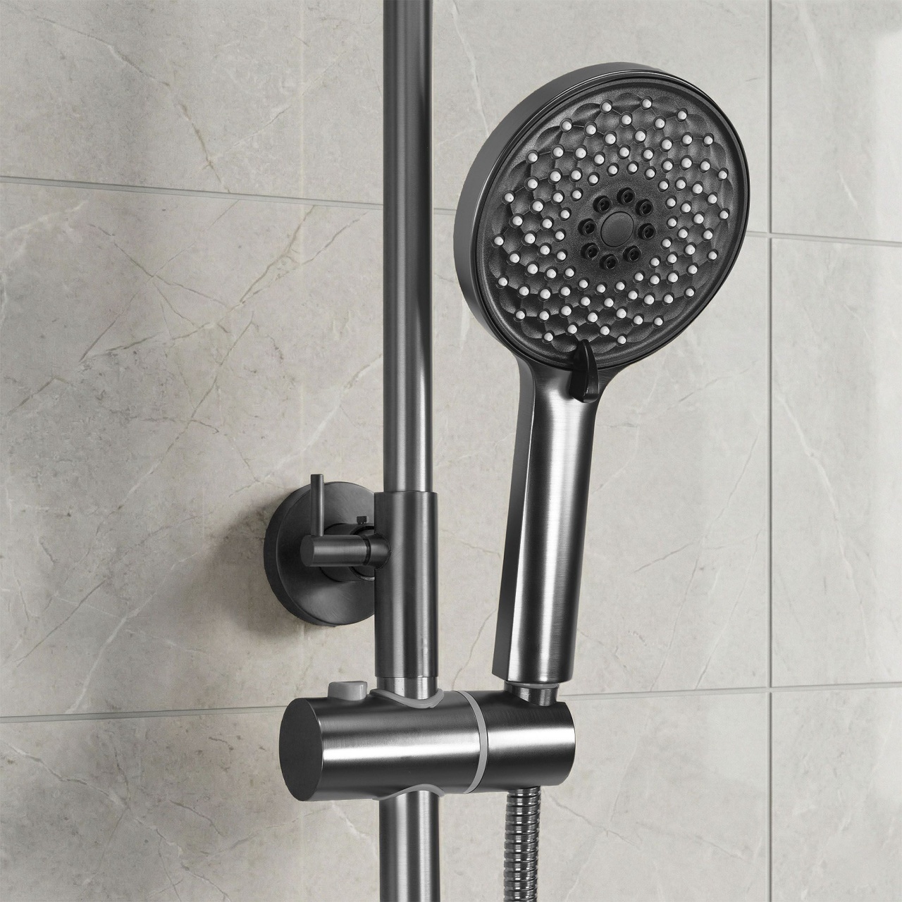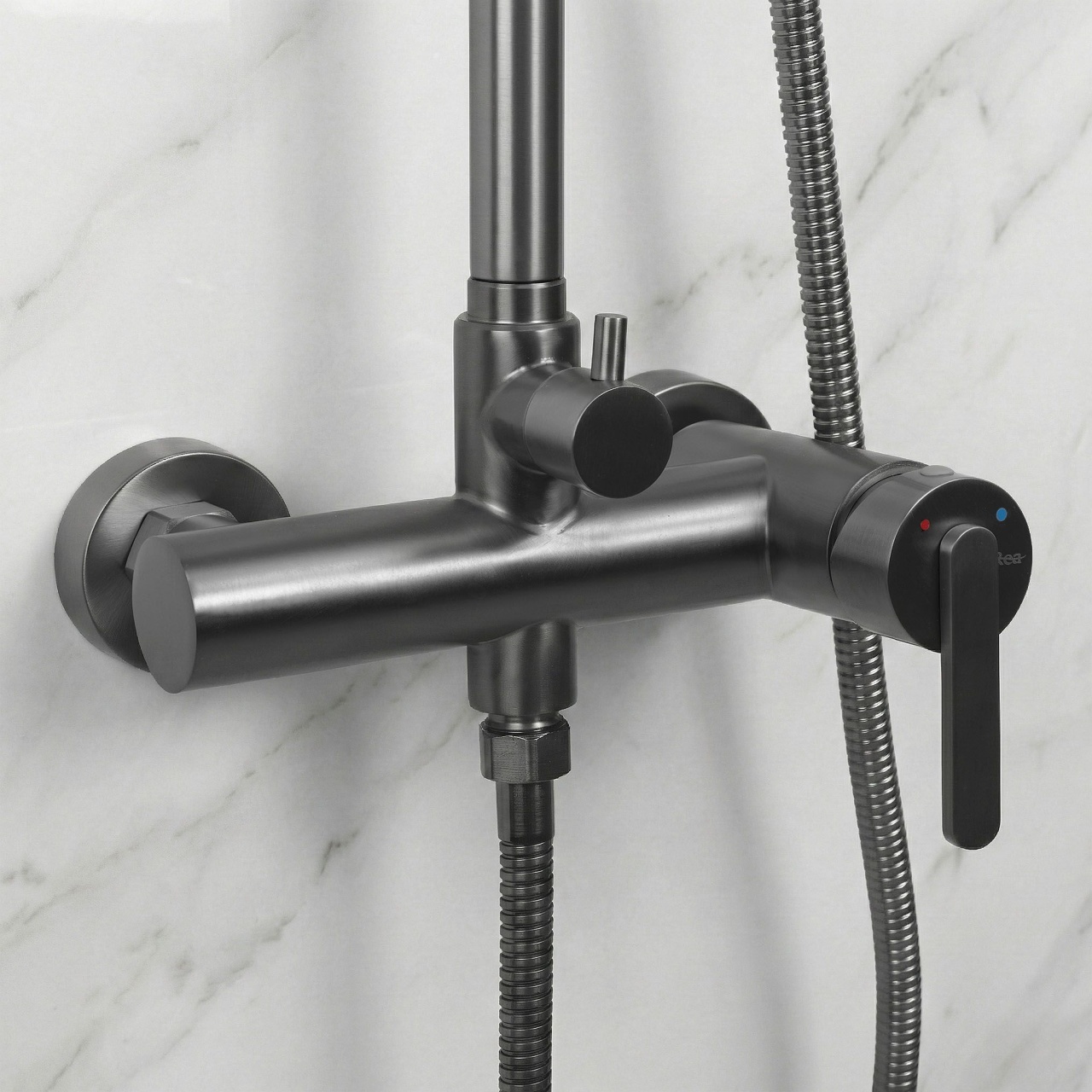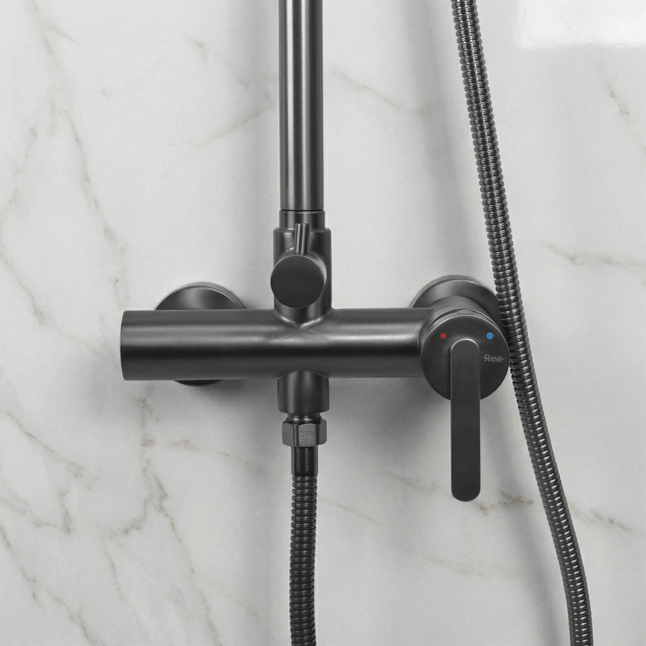 Descoperă dimensiunea luxoasă a dușului de zi cu zi cu setul de duș aparent Rea Ontario, care impresionează prin suprafața sa periată. Acest element elegant a fost proiectat pentru cei mai exigenți utilizatori, îmbinând estetica rafinată cu cea mai modernă tehnologie de finisare. Acoperirea PVD aplicată garantează nu doar un aspect impecabil, ci și o rezistență excepțională la zgârieturi și factori externi, astfel încât produsul își păstrează strălucirea ani la rând.Textură periată a suprafeței – oferă interiorului un caracter modern, mat, pe care se văd mai puțin urmele de apă și amprentele.Tehnologie de acoperire PVD – asigură durabilitate maximă a culorii și rezistență la deteriorări mecanice și coroziune.Pară de duș mare – oferă un jet larg și relaxant, pentru un moment de răsfăț ca într-un SPA profesionist.Duș de mână confortabil – permite spălarea precisă și facilitează curățarea zilnică a zonei de duș.Montaj aparent – permite o instalare eficientă și oferă băii un aer industrial, modern. Setul de duș aparent Rea Ontario este alegerea ideală pentru cei care caută soluții durabile, realizate la cele mai înalte standarde. Datorită combinației dintre para de duș și dușul de mână funcțional, fiecare duș devine o experiență confortabilă, adaptată nevoilor tale. Alegând un produs REA cu acoperire PVD, investești într-un design atemporal și într-o fiabilitate care va transforma baia ta pentru mulți ani. Culoare: Titan Material: Alamă, ABS Metodă de montaj: Suprafaţă Tip baterie: Monocomandă Înălțime min. : 765 Înălțime max.: 1315 Pipa cadă: Nu Reglare a presiunii: Reglare a presiunii Sistem Anti-Calc: Sistem Anti-Calc Tehnologia de acoperire: PVD Distanța dintre racorduri: 150 Garantie: 24 luni
