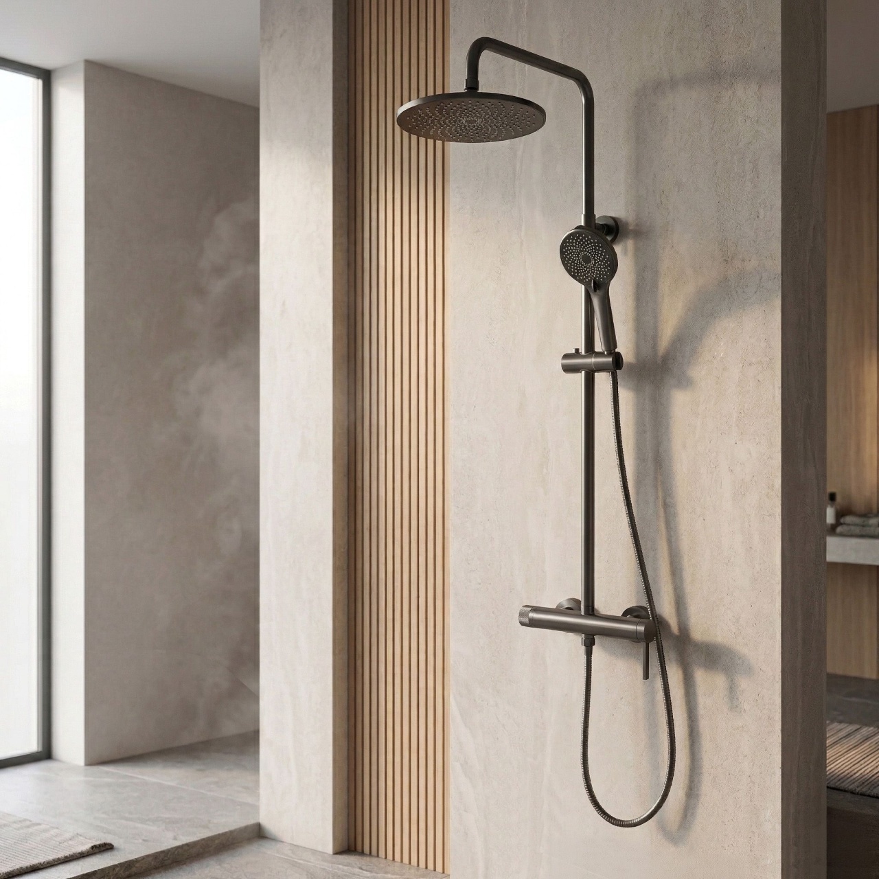 Cauți o soluție practică și elegantă pentru baia ta? Descoperă setul de duș aparent Rea Rivo în finisajul modern Titan. Este alegerea ideală pentru persoanele care apreciază designul minimalist și funcțiile bine gândite. Corpul bateriei din alamă și înălțimea reglabilă a dușului tip ploaie oferă confort în utilizarea de zi cu zi.Culoare Titan – un finisaj unic, periat, gri-oțel (obținut prin tehnologia avansată PVD), care se potrivește perfect cu amenajările moderne, loft și industriale, oferind interiorului un caracter metalic expresiv.Corp baterie din alamă – garantează soliditatea construcției și rezistența la utilizarea zilnică.Pară de duș multifuncțională – oferă nu doar modurile standard, ci și un jet inovator tip „bideu” amplasat în partea superioară a parei, ceea ce crește semnificativ funcționalitatea băii.Cartuș ceramic – mecanism precis ce permite reglarea lină și confortabilă a temperaturii și intensității jetului de apă.Sistem Anti-Calc – duzele din para de duș și capul de duș tip ploaie facilitează îndepărtarea depunerilor de calcar, ajutând la menținerea curățeniei setului.Montaj aparent – distanța standard între racorduri de 150 mm permite o instalare rapidă și ușoară.Setul de duș Rea Rivo Titan este o alegere excelentă pentru persoanele care apreciază designul modern și funcționalitatea peste medie. Acest set ridică nivelul de confort al dușului zilnic, oferind fiabilitate și un aspect stilat, tehnic, în baia ta. Culoare: Titan Material: Alamă, ABS Tip baterie: Monocomandă Metodă de montaj: Suprafaţă Reglare înălțime: Reglare înălțime Înălțime min. : 920 Înălțime max.: 1265 Pipa cadă: Nu Reglare a presiunii: Reglare a presiunii Sistem Anti-Calc: Sistem Anti-Calc Tehnologia de acoperire: PVD Distanța dintre racorduri: 150 Garantie: 5 ani