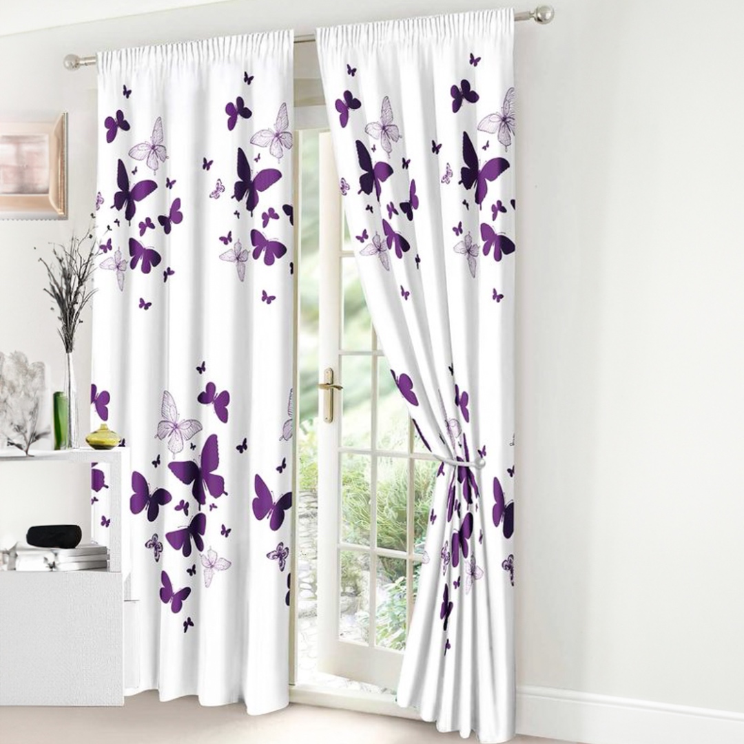 Set lenjerie de pat Matrimonial Compact (saltea 140x200 cm, pilota 160x200 cm) din bumbac finet, 6 piese, cu draperii incluse – Model fluturi Iti prezentam un set complet de lenjerie de pat din finet, format din 8 piese, inclusiv 2 draperii cu rejansa multifunctionala pentru o fixare usoara pe bara, dar si pe sina . Acest set unic are un design elegant si rafinat, care se regaseste atat pe lenjeria de pat, cat si pe draperii, oferind o armonie vizuala perfecta in dormitorul tau. Detal