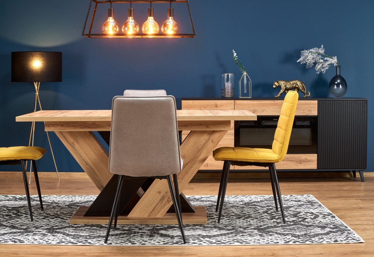 Setul cu masa extensibilă Brandon, cu o lungime reglabilă între 160 și 200 cm, aduce un farmec contemporan și funcționalitate în sufrageria ta. Blatul său elegant și finisat cu atenție emană rafinament, în timp ce posibilitatea de extensie permite să adaptați spațiul în funcție de nevoile voastre. Acest set este completat de două scaune K493 într-un gri subtil și două scaune K493 într-o nuanță muștar încântătoare. Dimensiuni masă: 77 cm 90 cm 160-200 cm Dimensiuni scaun: Lățime: 47 cm Adâncime: 60 cm Înălțimea totală: 92 cm Înălțimea șezutului față de sol: 47 cm Produsele nu sunt montate, sunt destinate pentru auto-asamblare. Instrucțiunile de montaj vin în colet.