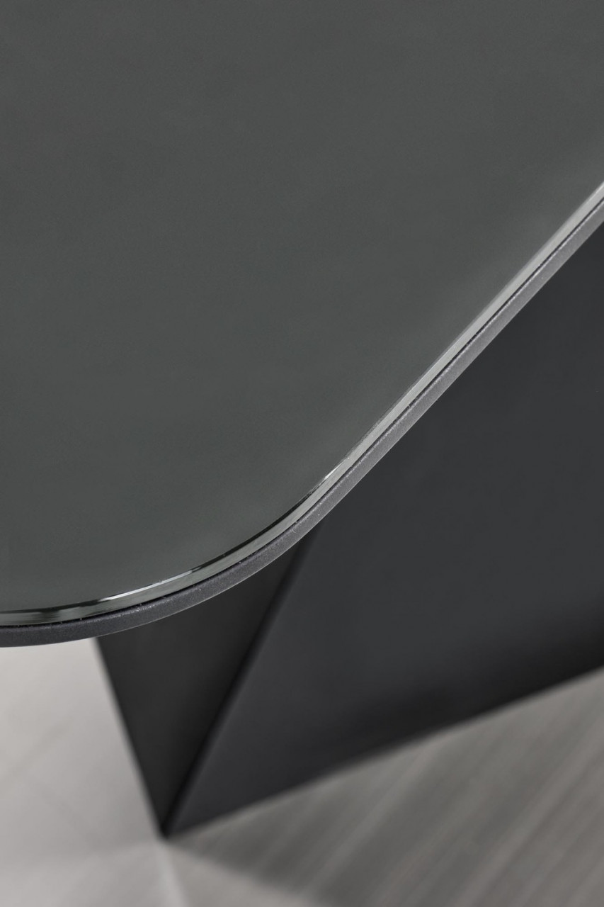 Masa Patrizio, cu designul său elegant și finisajele de lux, devine instantaneu punctul focal al încăperii. Blatul generos, cu contururi curate și linii distincte, emană rafinament și stil. Finisajele impecabile și materialele de calitate superioară, precum MDF-ul lăcuit și placa HPL, adaugă un aer regal acestei mese. Setul se completează armonios cu 4 scaune elegante din catifea gri. Catifeaua adaugă nu doar o notă de confort, ci și o textură plăcută și o aură de rafinament fiecărui scaun. Dimensiuni masă: 77 cm 90 cm 160-200 cm Dimensiuni scaun: Lățime: 44 cm Adâncime: 63 cm Înălțimea totală: 96 cm Înălțimea șezutului față de sol: 47 cm Produsele nu sunt montate, sunt destinate pentru auto-asamblare. Instrucțiunile de montaj vin în colet.