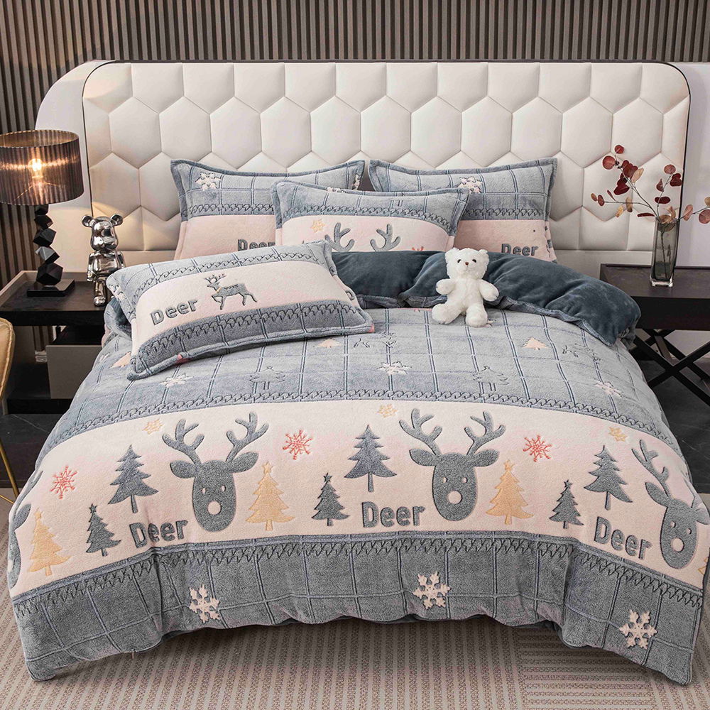 Set Sanziana - Perdea din In cu Flori Mari Gri si Draperie Blackout Gri Metalic