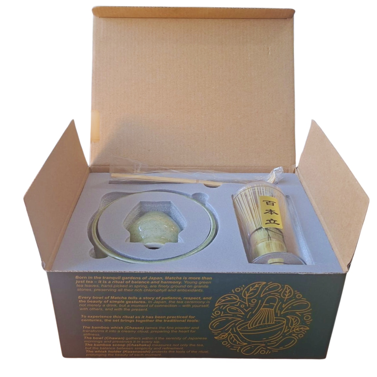 Redescoperă calmul, echilibrul și energia naturală cu Matcha Setul Tradițional 5 O’Clock Tea – un set elegant care transformă prepararea ceaiului într-un ritual autentic japonez. Fiecare element al setului este realizat din materiale naturale și finisat cu atenție, pentru ca tu să te bucuri de o experiență completă – de la prima mișcare a măturicii din bambus, până la prima înghițitură de Matcha catifelată. Inspirat de simplitatea și rafinamentul culturii japoneze, acest set aduce în casa ta o tradiție veche de secole – ceremonia ceaiului Matcha , simbolul armoniei, respectului și atenției pentru prezent. Conținut setul: Bol Matcha (Chawan) – confecționat din ceramică glazurată manual, cu formă ergonomică, perfect pentru amestecarea pudrei de ceai. Măturică din bambus (Chasen) – sculptat dintr-o singură bucată de bambus, cu fire fine ce transformă ceaiul într-o spumă cremoasă și fină. Linguriță din bambus (Chashaku) – dozaj perfect pentru gustul autentic de Matcha. Suport pentru bătător (Kuse Naoshi) – menține forma naturală a chasenului, prelungindu-i durata de viață. Cutie elegantă, cu interior din spumă protectoare – ideală pentru depozitare sau pentru a fi oferită cadou. ? Un cadou cu semnificație Ambalat elegant într-o cutie cu accente aurii, Matcha Setul Tradițional este alegerea perfectă pentru a dărui relaxare, rafinament și inspirație. Fie că îl oferi unui prieten, unui coleg sau chiar ție, acest set nu e doar un obiect, ci o experiență – un moment de liniște și frumusețe autentică. ? Ritualul Matcha – O poveste despre calm și echilibru În liniștea dimineții, deschizi cutia verde cu accente aurii. În interior, te așteaptă instrumentele unei tradiții vechi de secole – simple, naturale, perfecte. Așezi bolul Chawan în fața ta. Ceramica lui are o textură ușor neregulată, caldă la atingere, parcă gândită să-ți amintească de frumusețea imperfecțiunii. Cu lingurița din bambus – Chashaku , iei o măsură de pudră fină de Matcha . Verdele intens prinde viață în contact cu aerul și îți aduce deja o notă subtilă de prospețime. Torne apoi apă fierbinte, nu clocotită – doar cât să trezească aroma. Cu mișcări line, folosești măturica Chasen . Firele subțiri din bambus dansează în ceai, desenând forme de valuri. În câteva secunde, suprafața devine cremoasă, acoperită de o spumă ușoară, aproape mătăsoasă. Așezi Chasenul pe suportul său – Kuse Naoshi , ca un gest de recunoștință față de echilibru și ordine. Ridici bolul Chawan , îl ții cu ambele mâini și inspiri. E mai mult decât un ceai — e un moment în care timpul încetinește, iar energia devine calmă și clară. Un ritual care te reconectează cu tine însuți, prin simplitate și prezență.