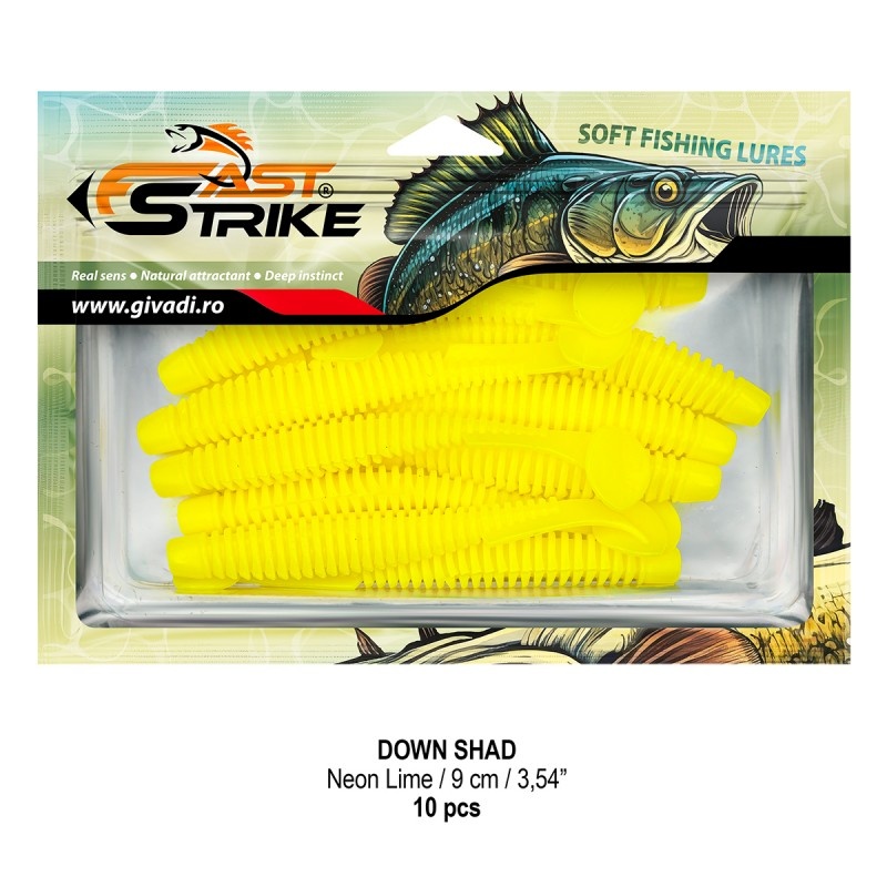 Fast Strike Down Shad Neon Lime 9cm este o nălucă soft versatilă, destinată pescuitului tuturor speciilor de răpitori — șalău, știucă, somn, biban și avat . Concepută pentru performanță maximă, această momeală oferă o acțiune naturală, echilibrată și vizibilitate excelentă chiar și în ape tulburi, datorită culorii sale Neon Lime, extrem de atractive pentru pești. Forma alungită, cu striații laterale adânci , amplifică vibrațiile și provoacă atacurile chiar și în perioadele de apatie totală. Coada este prevăzută cu kilă integrată în faza de turnare, care stabilizează năluca și îi oferă o mișcare controlată și realistă în timpul recuperării. Poate fi utilizată cu succes pe multiple monturi — jig clasic, Cheburashka, Texas sau offset — fiind ideală în apropierea structurilor scufundate, unde alte momeli tind să se agațe. Materialul moale, dar rezistent, asigură durabilitate ridicată, iar aroma intensă de peștișor pradă crește puterea de atracție. Ambalajul resigilabil cu tavă rigidă de protecție păstrează forma și calitatea nalucilor pentru o perioadă îndelungată. Caracteristici: ? Tip nălucă: shad soft versatil ? Specii vizate: șalău, știucă, somn, biban, avat ⚙️ Material: silicon moale, rezistent și aromat ? Acțiune: vibrație amplificată prin striațiile corpului Monturi compatibile: jig, Cheburashka, offset, Texas rig ? Detaliu tehnic: kilă integrată pentru stabilitate perfectă ? Aromă: peștișor pradă natural ? Lungime: 9 cm ? Culoare: Neon Lime ? Ambalaj: blister cu tavă protecție și fermoar, 10 bucăți