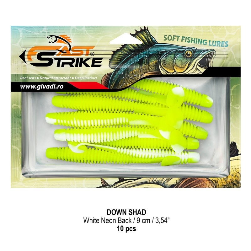 Fast Strike Down Shad White Neon Back 9cm este o nălucă soft versatilă, destinată pescuitului tuturor speciilor de răpitori — șalău, știucă, somn, biban și avat . Concepută pentru performanță maximă, această momeală oferă o acțiune naturală, echilibrată și vizibilitate excelentă chiar și în ape tulburi, datorită culorii sale White Neon Back, extrem de atractive pentru pești. Forma alungită, cu striații laterale adânci , amplifică vibrațiile și provoacă atacurile chiar și în perioadele de apatie totală. Coada este prevăzută cu kilă integrată în faza de turnare, care stabilizează năluca și îi oferă o mișcare controlată și realistă în timpul recuperării. Poate fi utilizată cu succes pe multiple monturi — jig clasic, Cheburashka, Texas sau offset — fiind ideală în apropierea structurilor scufundate, unde alte momeli tind să se agațe. Materialul moale, dar rezistent, asigură durabilitate ridicată, iar aroma intensă de peștișor pradă crește puterea de atracție. Ambalajul resigilabil cu tavă rigidă de protecție păstrează forma și calitatea nalucilor pentru o perioadă îndelungată. Caracteristici: ? Tip nălucă: shad soft versatil ? Specii vizate: șalău, știucă, somn, biban, avat ⚙️ Material: silicon moale, rezistent și aromat ? Acțiune: vibrație amplificată prin striațiile corpului Monturi compatibile: jig, Cheburashka, offset, Texas rig ? Detaliu tehnic: kilă integrată pentru stabilitate perfectă ? Aromă: peștișor pradă natural ? Lungime: 9 cm ? Culoare: White Neon Back ? Ambalaj: blister cu tavă protecție și fermoar, 10 bucăți