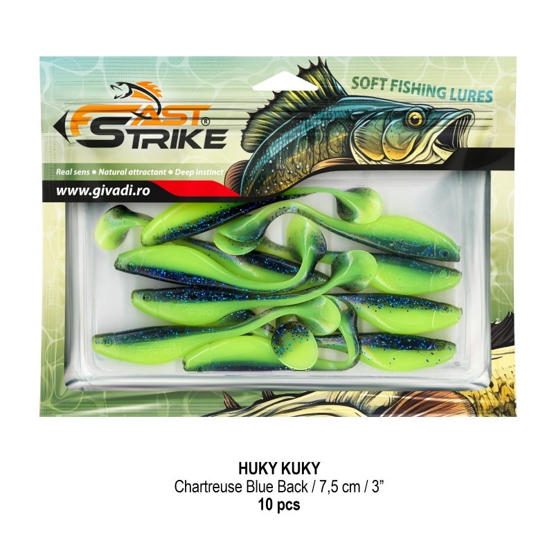 Shad Fast Strike Huky Kuky, Chartreuse Blue Back, 7.5cm, 2.7g, 10buc/plic