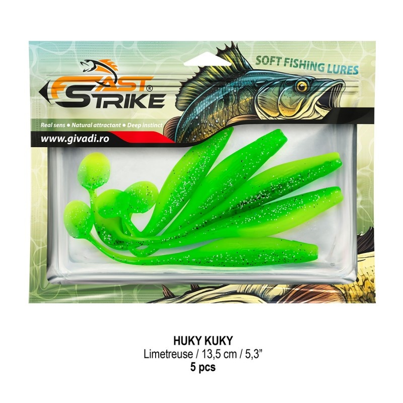 Shad Fast Strike Huky Kuky, Limetreuse, 13.5cm, 5buc/blister este o nălucă soft premium, dedicată pescuitului peștilor răpitori precum știuca, șalăul, somnul și bibanul mare , având o acțiune irezistibilă și o construcție atent gândită pentru performanță maximă. Corpul alungit, suplu și coada lungă, subțire, conferă nalucii o mișcare naturală și o vibrație amplă care atrage răpitorii chiar și în perioadele de activitate redusă. Datorită formei sale, Huky Kuky poate fi folosită cu succes atât la trena , cât și armată pe jig , evoluând stabil și provocator în toate straturile de apă — de la suprafață la adâncime. Realizată din material siliconic premium , moale dar rezistent, naluca își păstrează proprietățile inițiale chiar și după multiple atacuri. Este impregnată cu un miros atractiv de peștișor pradă, menit să prelungească timpul de interes al răpitorului. Ambalată în blister rigid cu tavă de protecție și plic resigilabil cu fermoar , Huky Kuky 13.5cm își păstrează forma perfectă și calitatea materialului în timp, fiind o alegere de încredere pentru pescarii exigenți. Caracteristici: ? Tip nălucă: shad soft alungit ? Specii vizate: știucă, șalău, somn, biban mare ⚙️ Material: silicon premium, moale și durabil ? Coada: lungă și flexibilă, vibrație amplă și realistă ? Aromă: peștișor pradă, impregnată din fabrică Monturi compatibile: jig, trena, offset ? Culoare: Limetreuse ? Lungime: 13.5 cm ⚖️ Greutate: 8.4 g ? Ambalaj: blister cu tavă rigidă și plic resigilabil, 5 bucăți