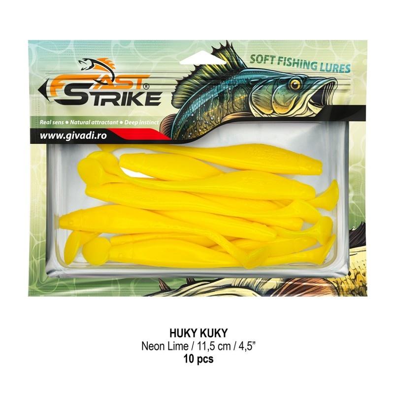 Fast Strike Huky Kuky 11,5cm, culoare Neon Lime este o nălucă soft de înaltă calitate, proiectată pentru pescuitul șalăului, știucii, somnului și bibanului mare , oferind o acțiune extrem de atractivă și o versatilitate excelentă pe orice tip de apă — râuri, baraje sau lacuri. Corpul subțire, alungit, este completat de o coadă lungă și suplă , care generează vibrații fine și mișcări naturale chiar și la recuperări lente. Această acțiune realistă declanșează atacuri reflexe din partea răpitorilor, chiar și în perioadele de apatie. Huky Kuky 11,5cm poate fi folosită cu succes atât la trena , cât și armată pe jig , păstrând o evoluție echilibrată și eficientă. Materialul moale și elastic din care este fabricată asigură rezistență la multiple atacuri, fără pierderea formei sau a flexibilității. Năluca este impregnată cu miros atractiv de peștișor pradă , iar ambalajul premium, cu blister rigid și plic resigilabil cu fermoar , protejează forma și calitatea momelii în timpul transportului și depozitării. Caracteristici: ? Tip nălucă: shad soft alungit ? Specii vizate: șalău, știucă, somn, biban mare ⚙️ Material: silicon premium, moale și rezistent ? Coada: lungă, vibrație amplă și naturală ? Aromă: miros atractiv de peștișor pradă Monturi compatibile: jig, trena, offset ? Culoare: Neon Lime ? Lungime: 11,5 cm (4.5) ⚖️ Greutate: 4.3 g ? Ambalaj: blister cu tavă rigidă, plic cu fermoar, 10 bucăți